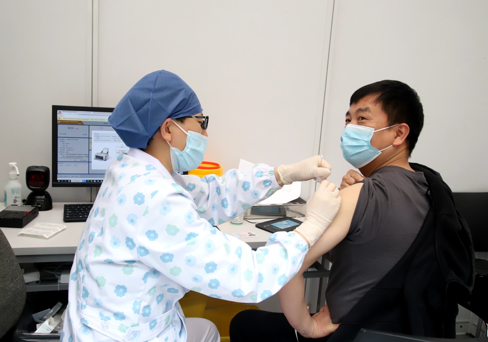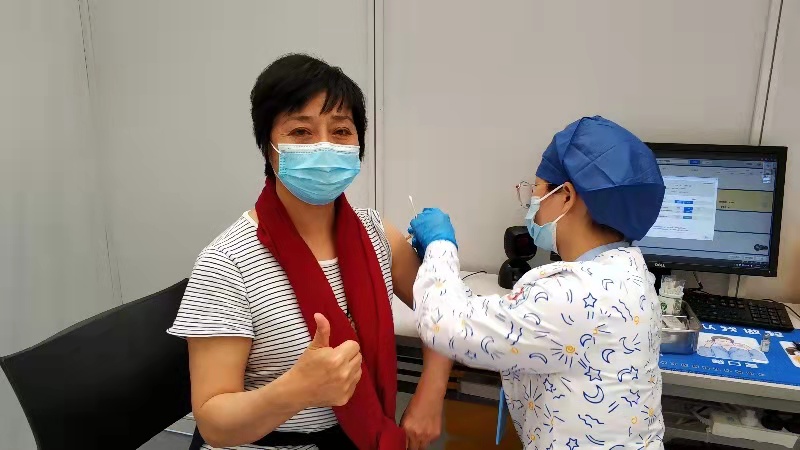 接种完疫苗后,文化管理系教师胡锦霞说:“今天开始多了一份保护,接种疫苗,让我们共同筑起防御墙,保护自己和大家的安全。”