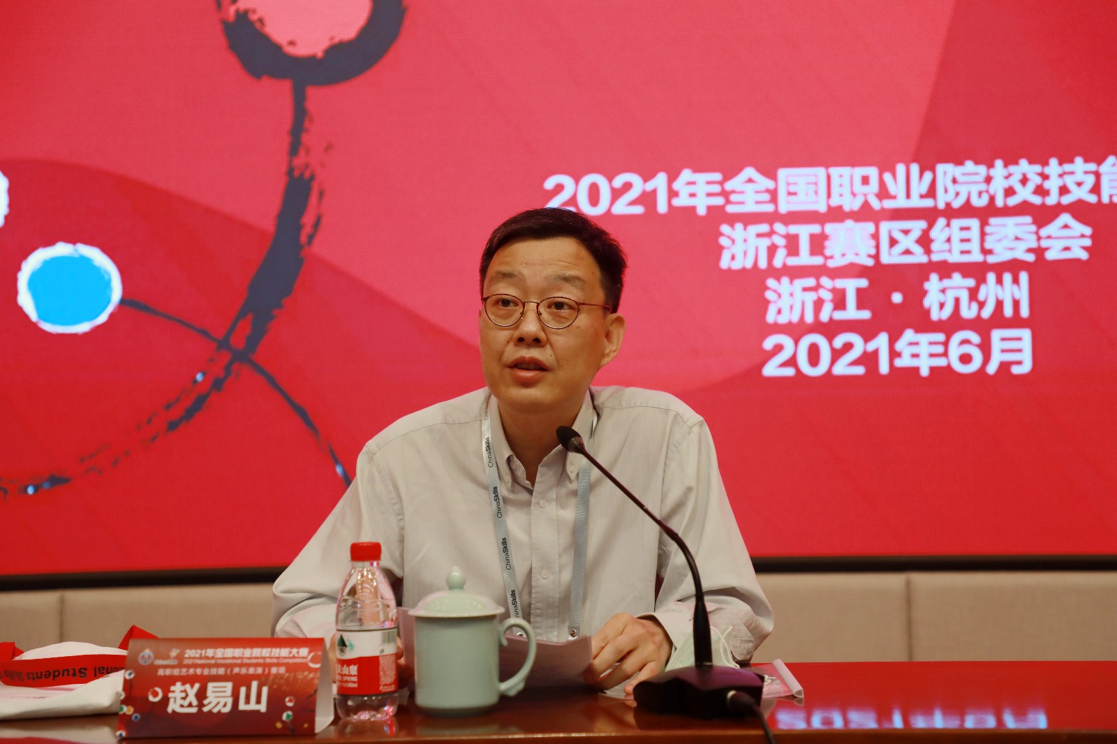 赵易山是全国职业院校技能大赛艺术专业技能赛项的老朋友,自2013年设立艺术专业技能赛项起便连续多年担任大赛评委。同时,他也是我们浙江艺术职业学院的老朋友,在由我校承办的2018年全国职业院校技能大赛中高职组艺术专业技能(弹拨乐演奏)赛项时,便曾到访过浙艺。6月6日,在先期举行的开赛仪式上,许多浙艺师生因再次见到了赵老师发了朋友圈以表开心。