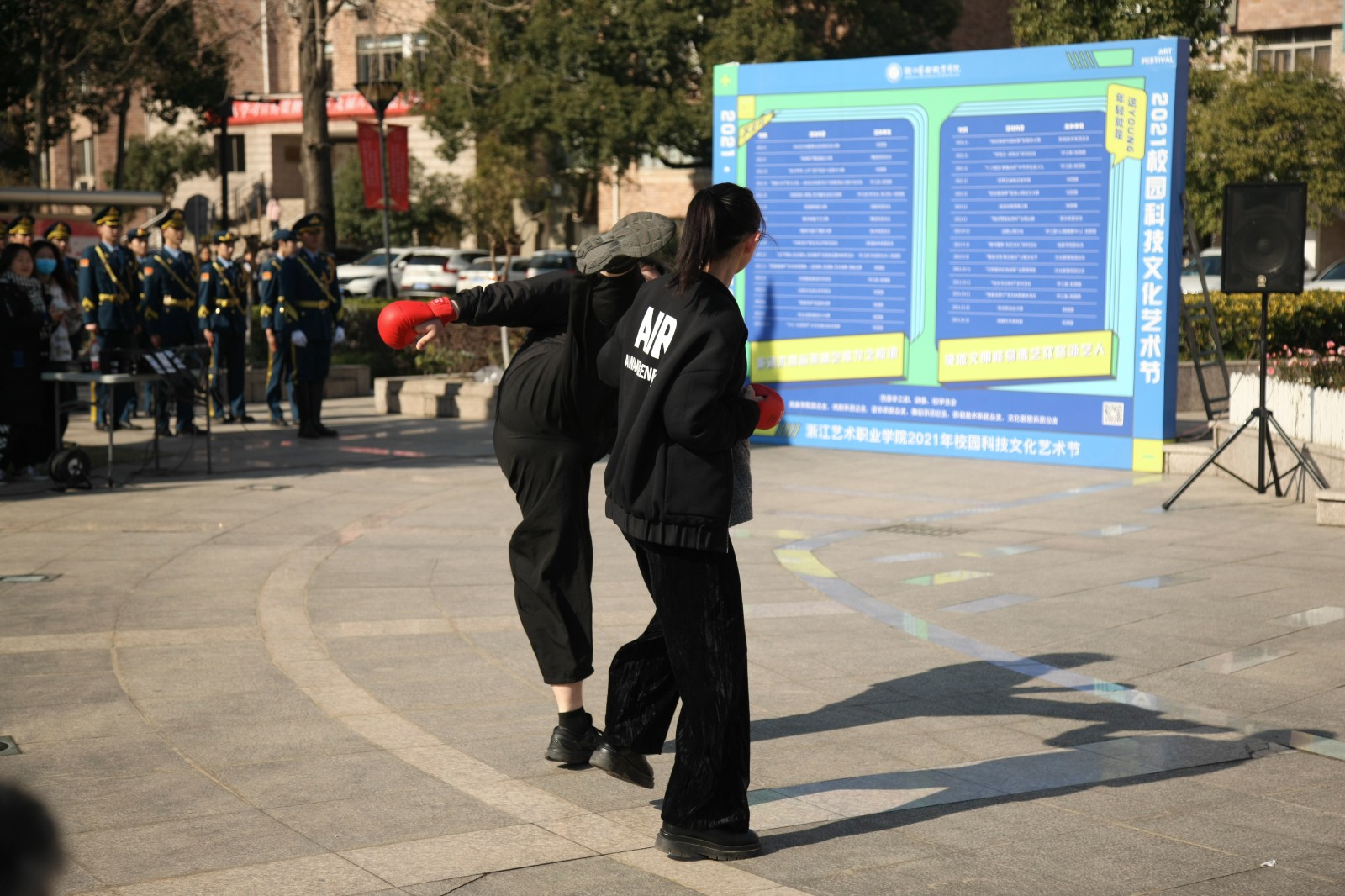 12月27日,在冬日灿烂阳光下,以“浙艺的社团很精彩”为主题的2021年书记校长有约第六期在校中心广场举行,我校18个学生社团纷纷亮相进行风采展示。校党委书记薛亮,院长黄杭娟,党委副书记夏开堂,党委委员、宣传部(统战部)部长马向东参加活动并与各社团成员进行交流。