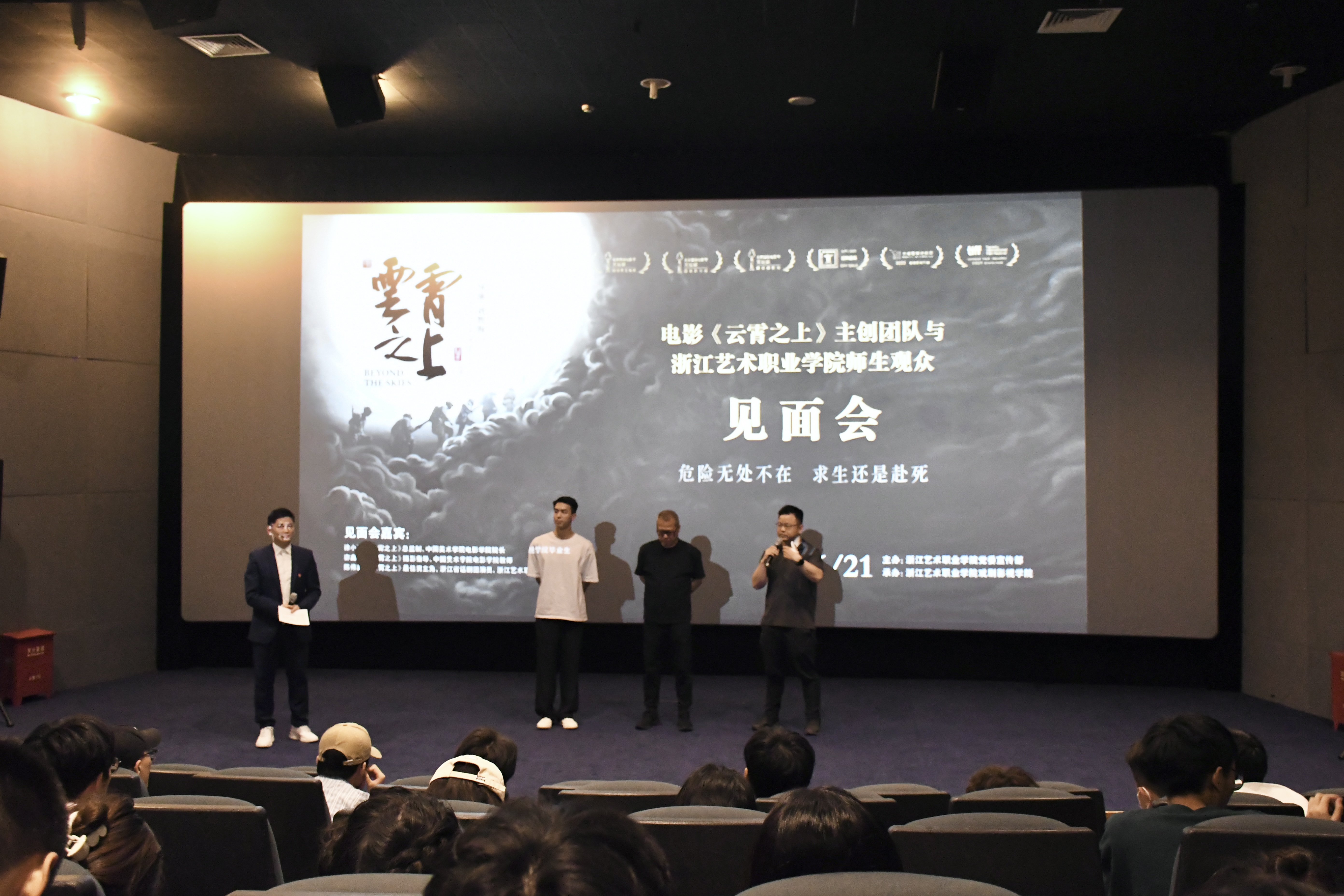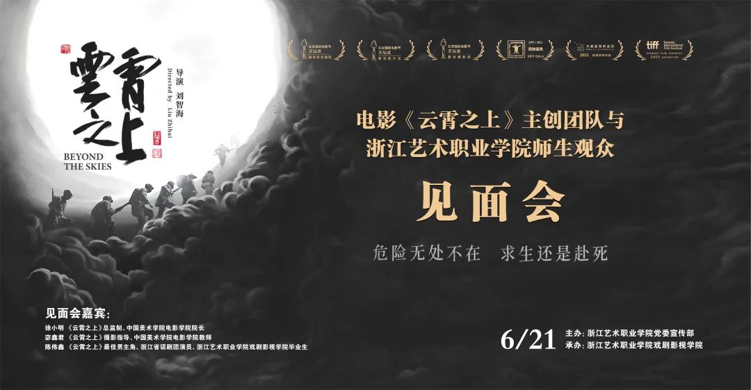 为纪念中国共产党成立 101 周年,迎接党的二十大胜利召开,6月21日,《云霄之上》浙江艺术职业学院特别献映活动在浙江实验艺术剧场举办。电影主创团队总监制、中国美术学院电影学院院长徐小明,电影摄影指导、中国美术学院电影学院教师宓鑫君,电影男主演、浙江话剧团演员陈伟鑫莅临现场。浙江艺术职业学院纪委书记徐芳、副院长沈军甫,党委委员、宣传部(统战部)部长马向东,党委委员、组织部(人才办)部长刘杨和戏剧影视学院300余名师生参加活动。此次活动由校党委宣传部(统战部)主办,戏剧影视学院承办。