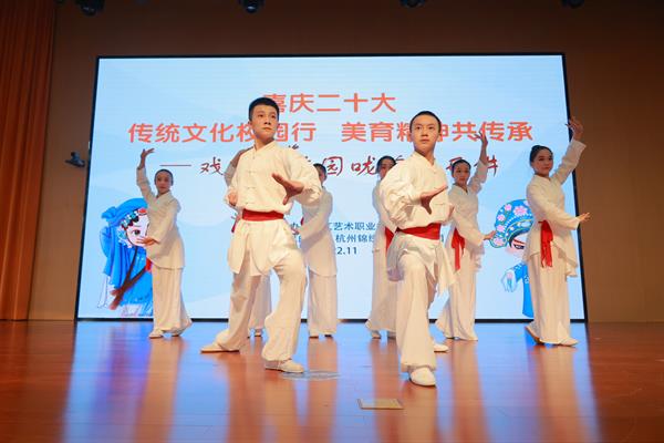 11月下旬,浙江艺术职业学院戏曲学院联合杭州锦绣育才教育集团、临平区文化馆、拱墅区戏剧家协会、临平区实验小学等单位,开展了8场“传统文化校园行 美育精神共传承”戏曲进校园系列活动,将戏曲带进锦绣中学、临平区实验小学、育才中学、京杭小学等中小学,以剧节目展演的形式引导学生体验传统文化,以沉浸式体验活动来传播戏曲知识,培养学生对优秀传统文化的兴趣,增强学生戏曲艺术素养和审美素养,进行戏曲美育教育。