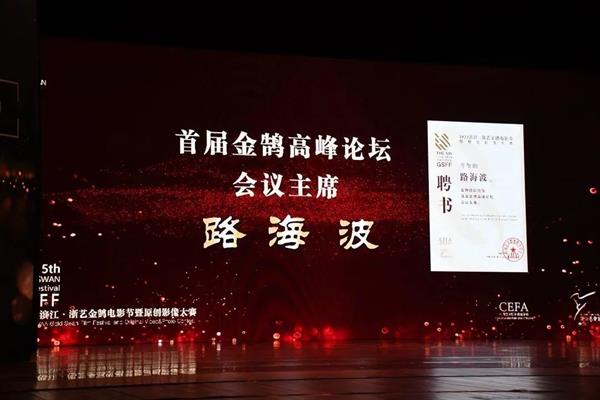 开幕式上,还举行了首届金鹄高峰论坛主席受聘仪式。担任高峰论坛主席的中央戏剧学院路海波教授通过视频连线发言。他希望能将更有权威性和指导性的意见带给参赛选手们,期待未来能有更多专家学者加入,用学术交流滋养“金鹄”的成长和发展。他寄语影视青年人,时刻保持激情、保持奋进,用镜头展现青春风采,在影视逐梦的舞台上大放光彩。