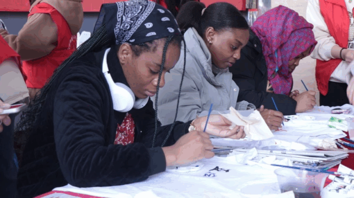 浙艺“艺小匠”志愿者携手外籍友人用色彩挥洒激情,用活力迎接亚运,凝聚女性力量,展现女性风采,以积极阳光的精神面貌迎接杭州亚运会的到来。志愿者们将继续秉持“文化保护,工艺振兴”的匠心传承,把传统手工艺带出校园,带进群众,带入社区乡村,让老百姓近距离感受传统手工艺文化的魅力。