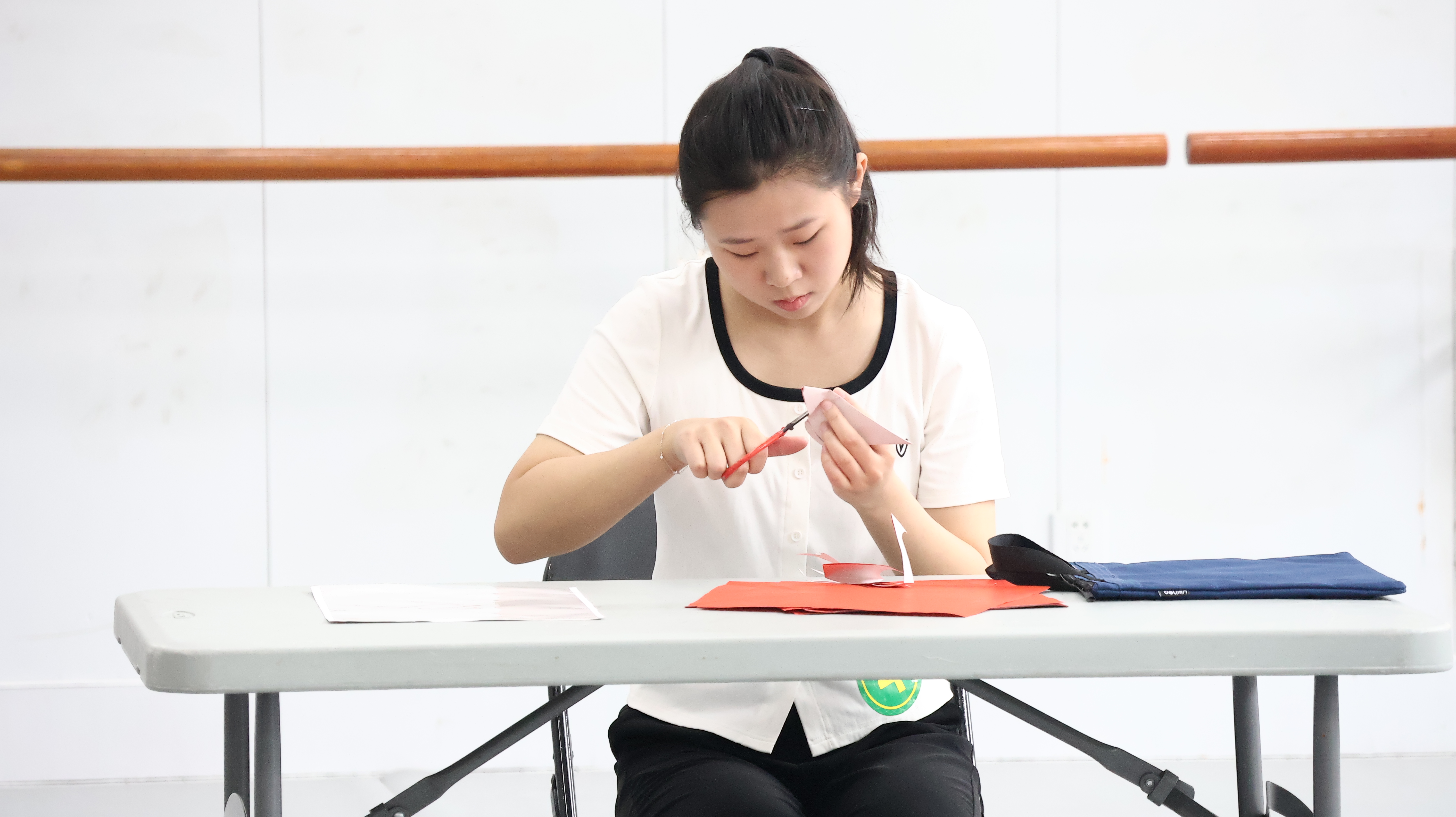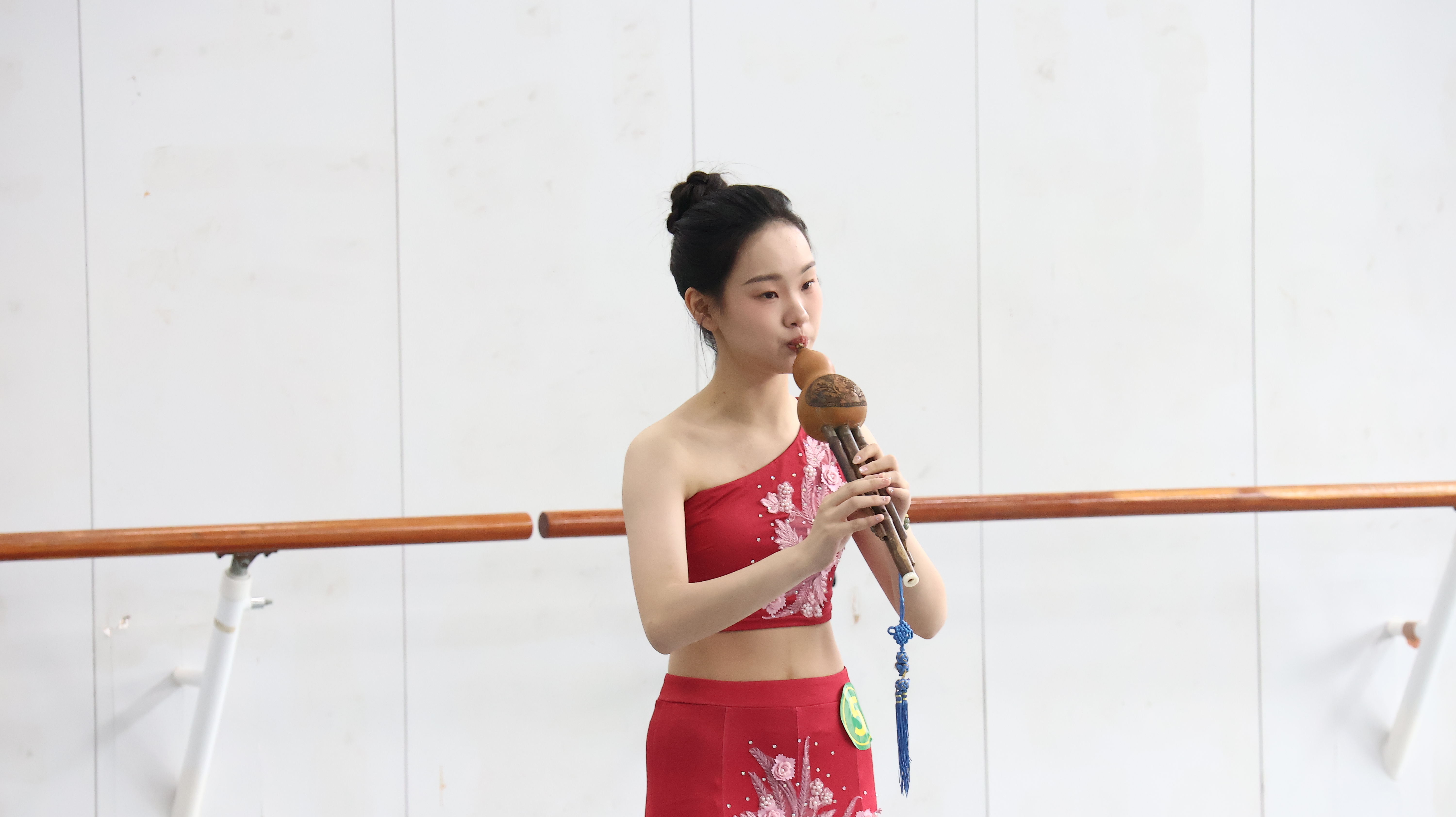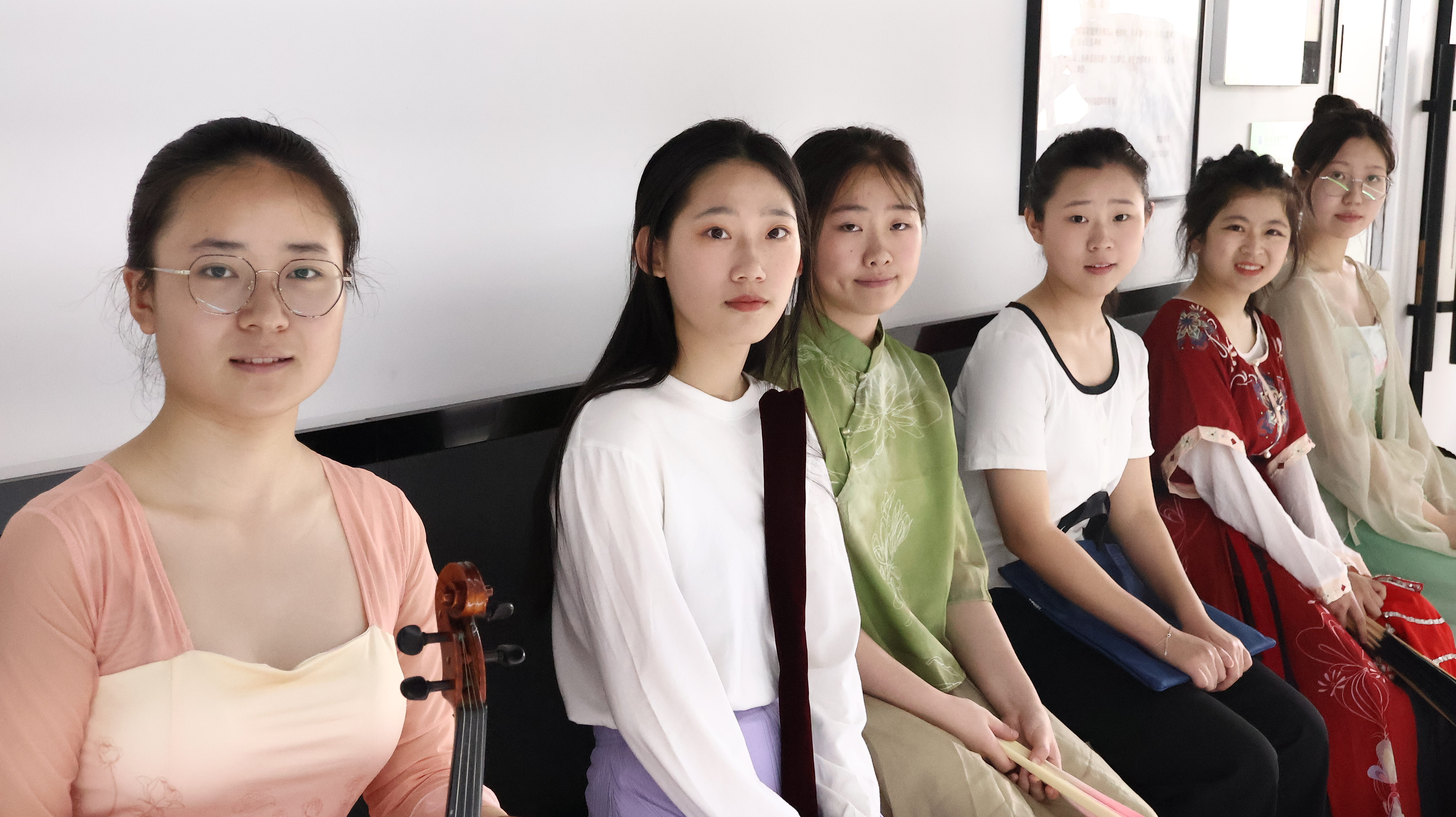 在候考教室内的考生抓紧为考试做最后的准备。有的站在窗前开嗓,有的认真检查乐器,有的面对镜子仔细检查穿戴服饰……专业测试时,考生按地区分组在学生志愿者的带领下井然有序进入考场,考官通过声乐、语言、形体、才艺展示等进行评分。现场,有的同学演唱流行音乐,有的同学进行无伴奏清唱;有的将一段寓言故事娓娓道来,有的声情并茂地朗诵诗歌;形体展示有武术、舞蹈等,跨度大,难度高;才艺展示中,有架子鼓表演,也有书法、国画展示。考生们有条不紊、神采奕奕,尽力将自己最优秀的一面展现在考官面前。