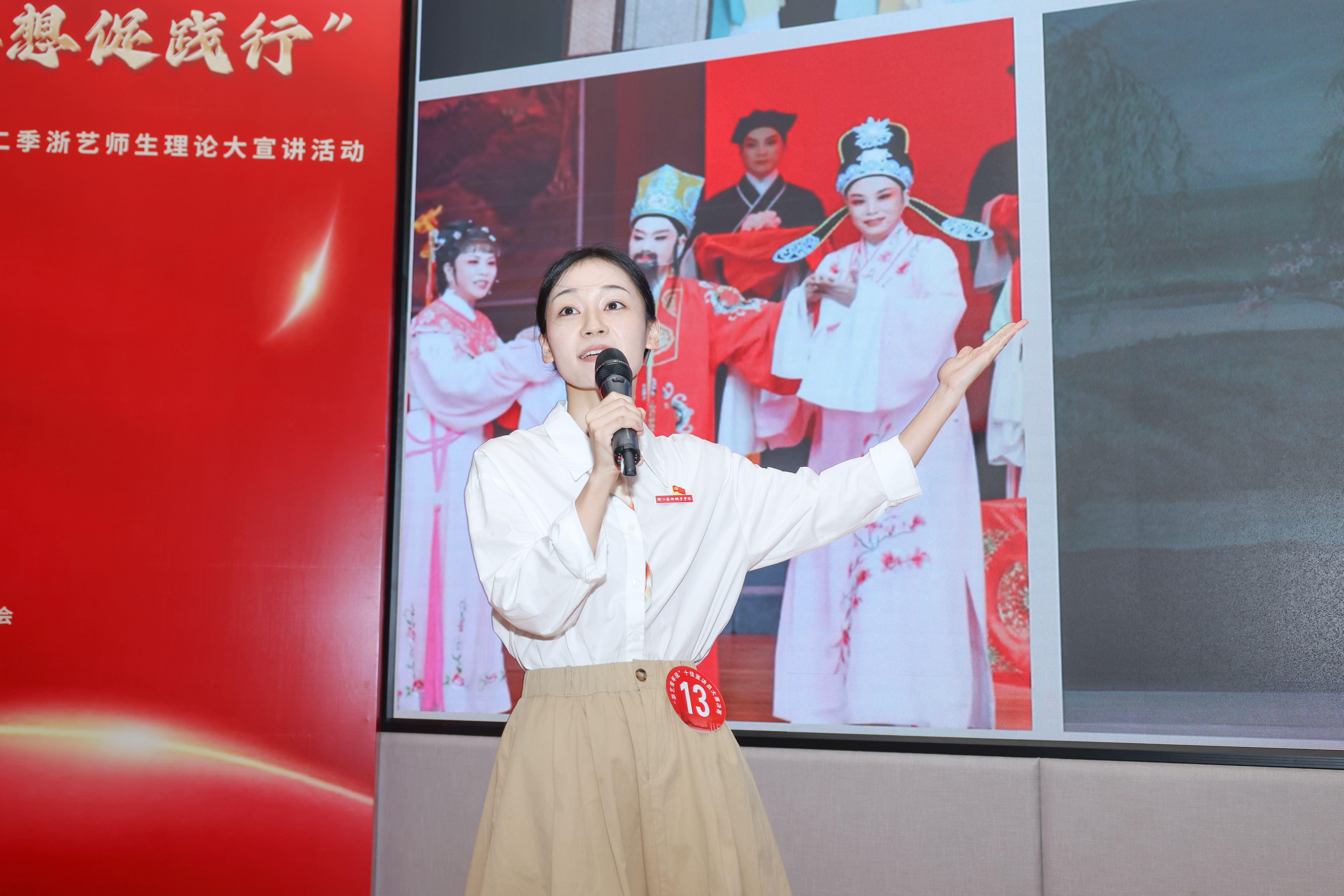 自2022年以来,“浙艺青年说”青年师生理论宣讲团围绕学习贯彻习近平新时代中国特色社会主义思想和党的二十大精神,在校内外广泛开展理论宣讲活动。接下来,“浙艺青年说”师生宣讲员将深入师生、深入基层、深入社会开展宣讲,通过丰富多彩、形式多样的宣讲讲好中国故事、讲好浙艺故事,让党的创新理论飞入寻常百姓家。