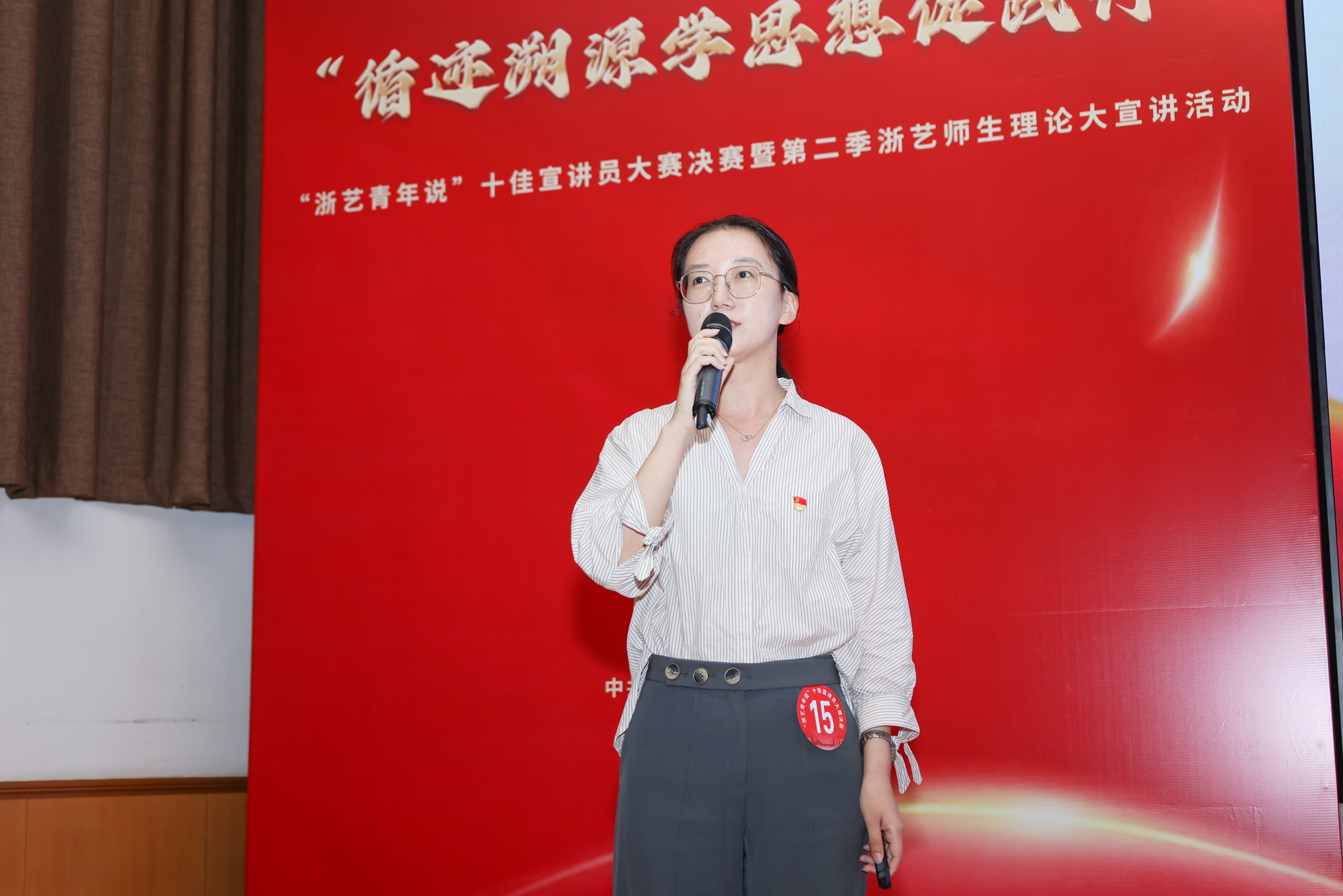 本次宣讲员比赛活动是浙江艺术职业学院学习贯彻习近平新时代中国特色社会主义思想主题教育的一项重要活动,通过青年师生主题宣讲,引导全校师生深入学习贯彻习近平新时代中国特色社会主义思想和党的二十大精神,从中汲取进取的智慧和力量,自觉接受思想淬炼和精神洗礼,在不断强化理论武装的过程中筑牢信仰之基,补足精神之钙,把稳思想之舵。