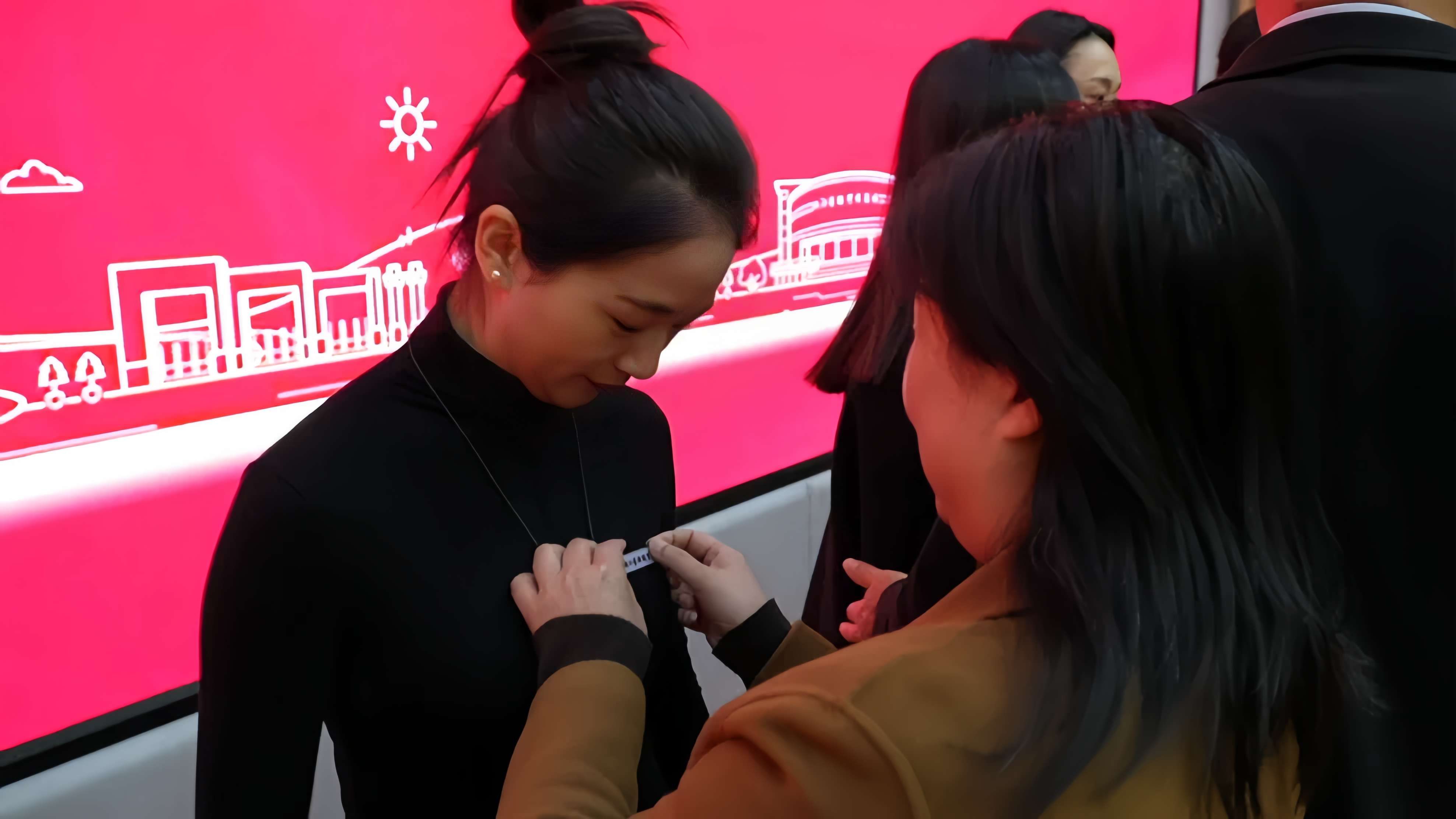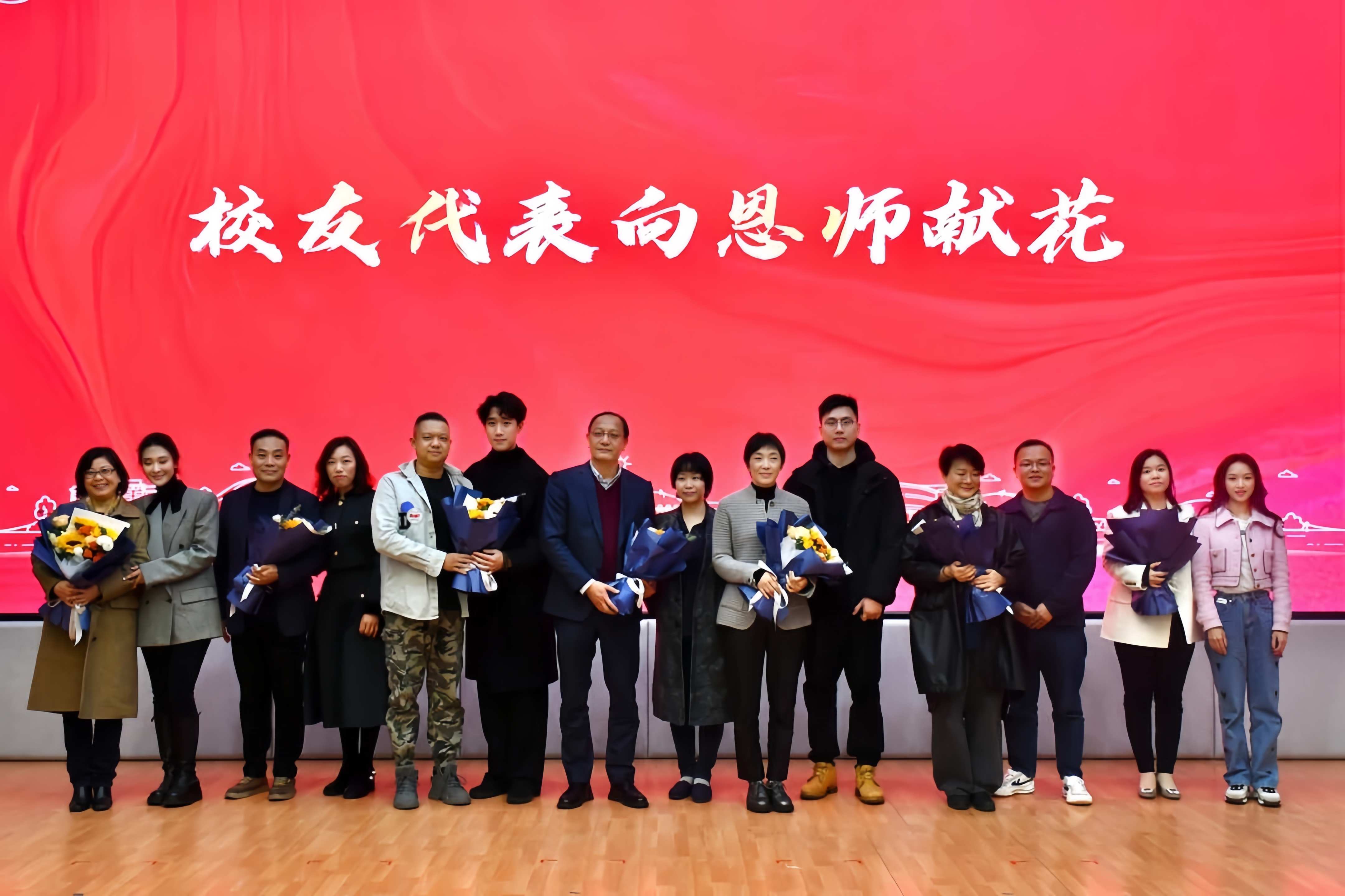 各二级学院领导为校友佩戴校徽重温青春岁月,校友代表为恩师献鲜花,感谢师恩。