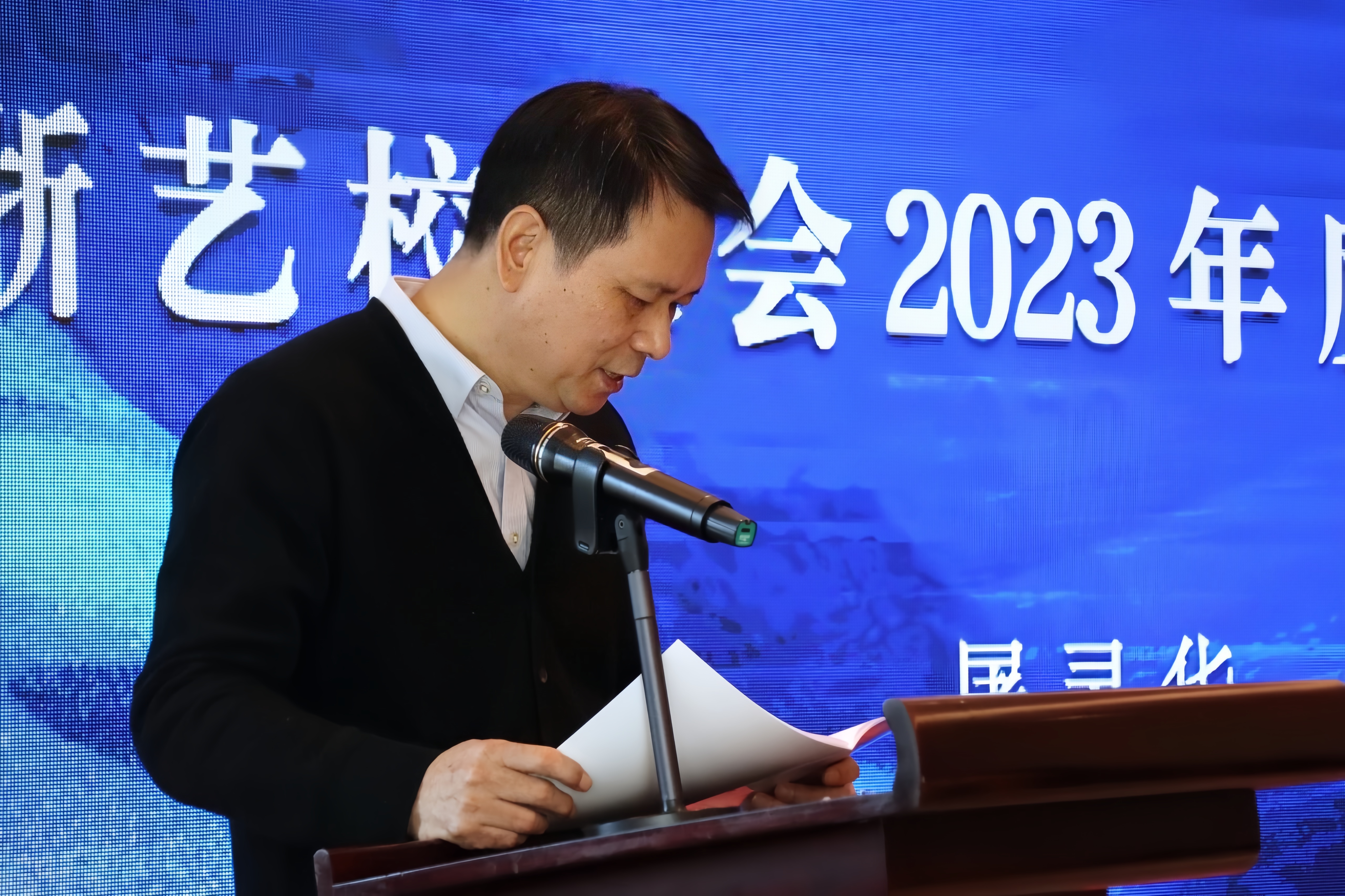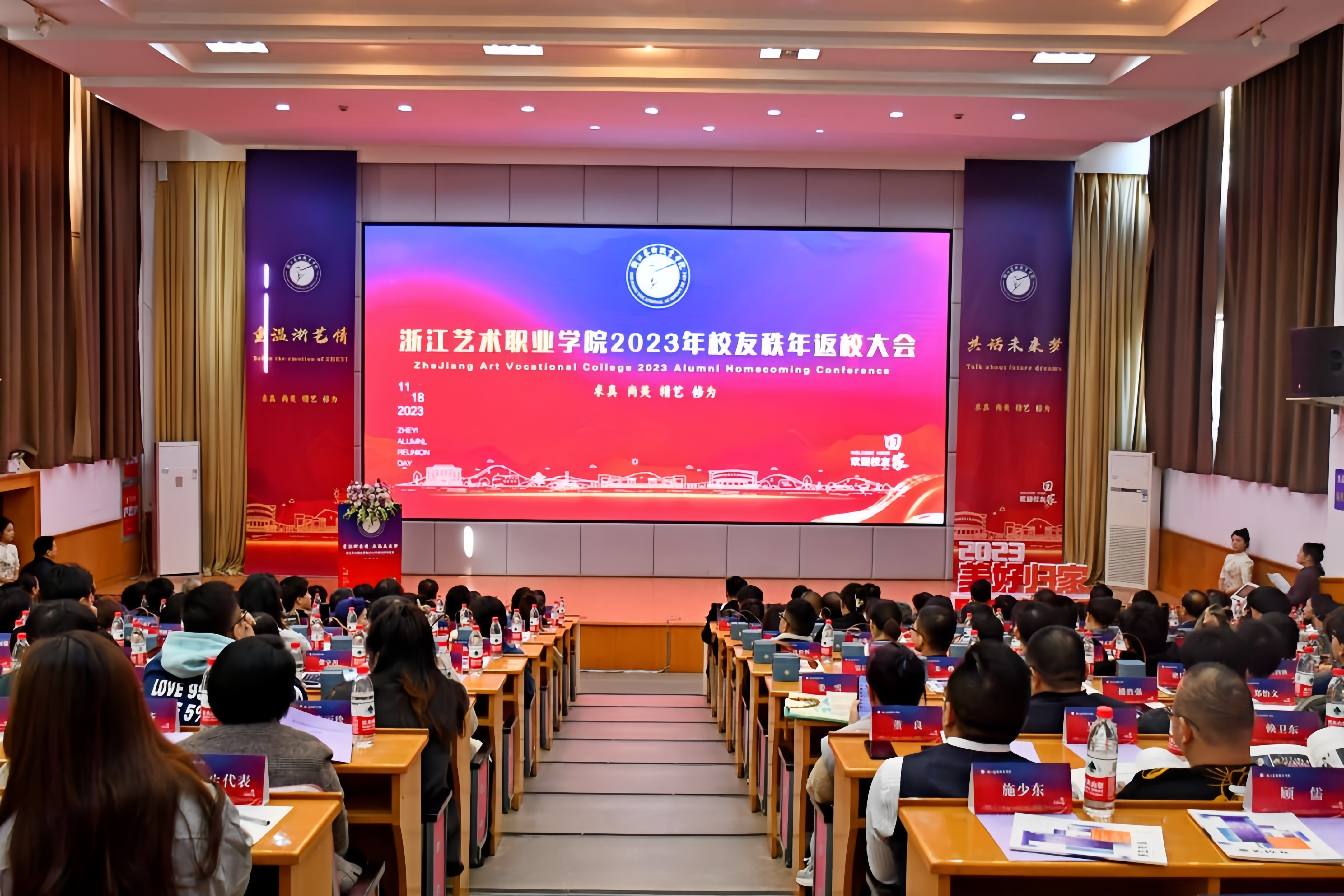 浙江艺术职业学院2023年校友秩年返校大会在学校图信报告厅举行。校党委书记薛亮,党委委员、副院长沈军甫出席大会。大会由校党委副书记夏开堂主持。