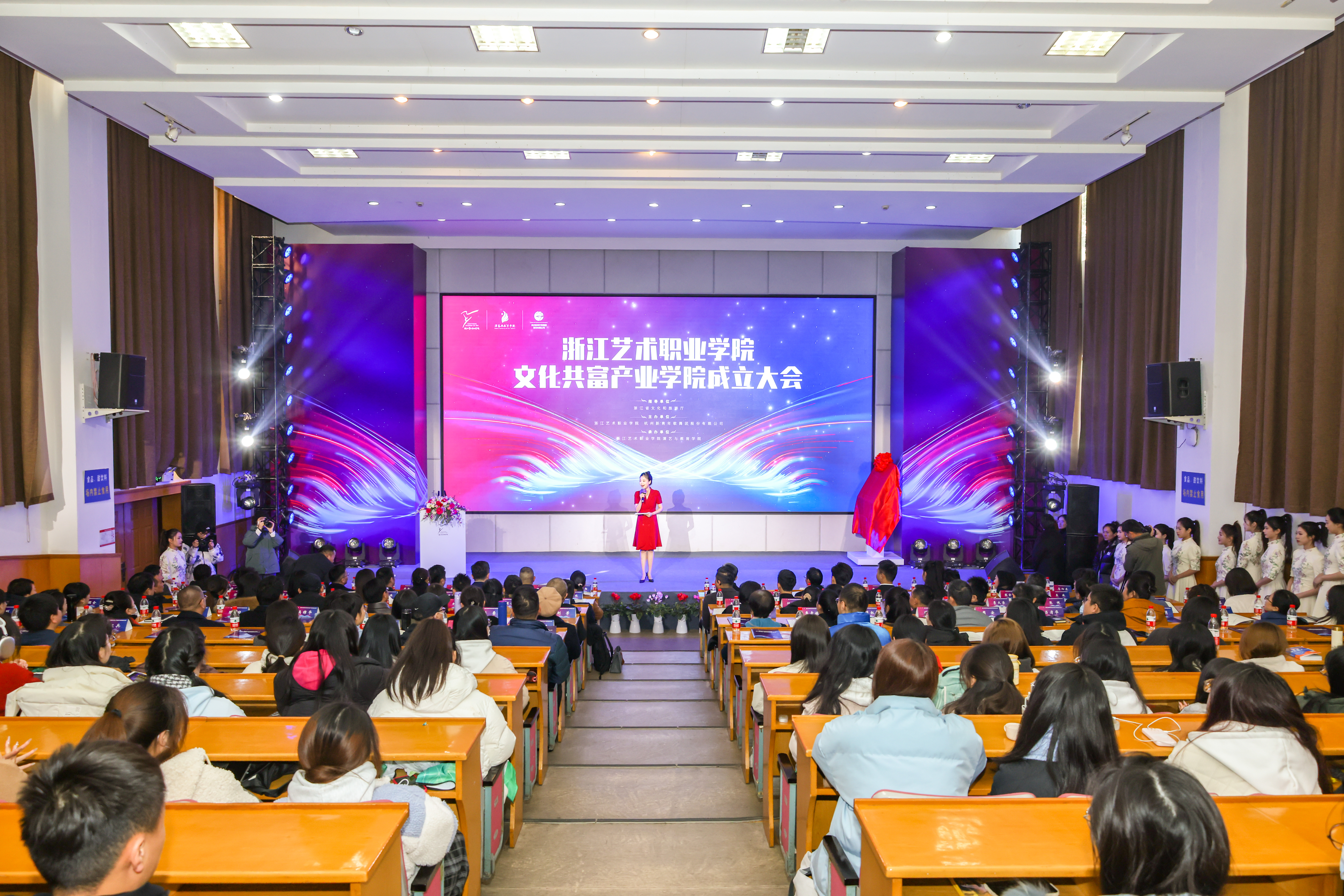 12月27日上午,由浙江省文化和旅游厅指导,浙江艺术职业学院和杭州新青年歌舞团股份有限公司主办、浙艺演艺与教育学院承办的文化共富产业学院成立大会在图信中心举行。