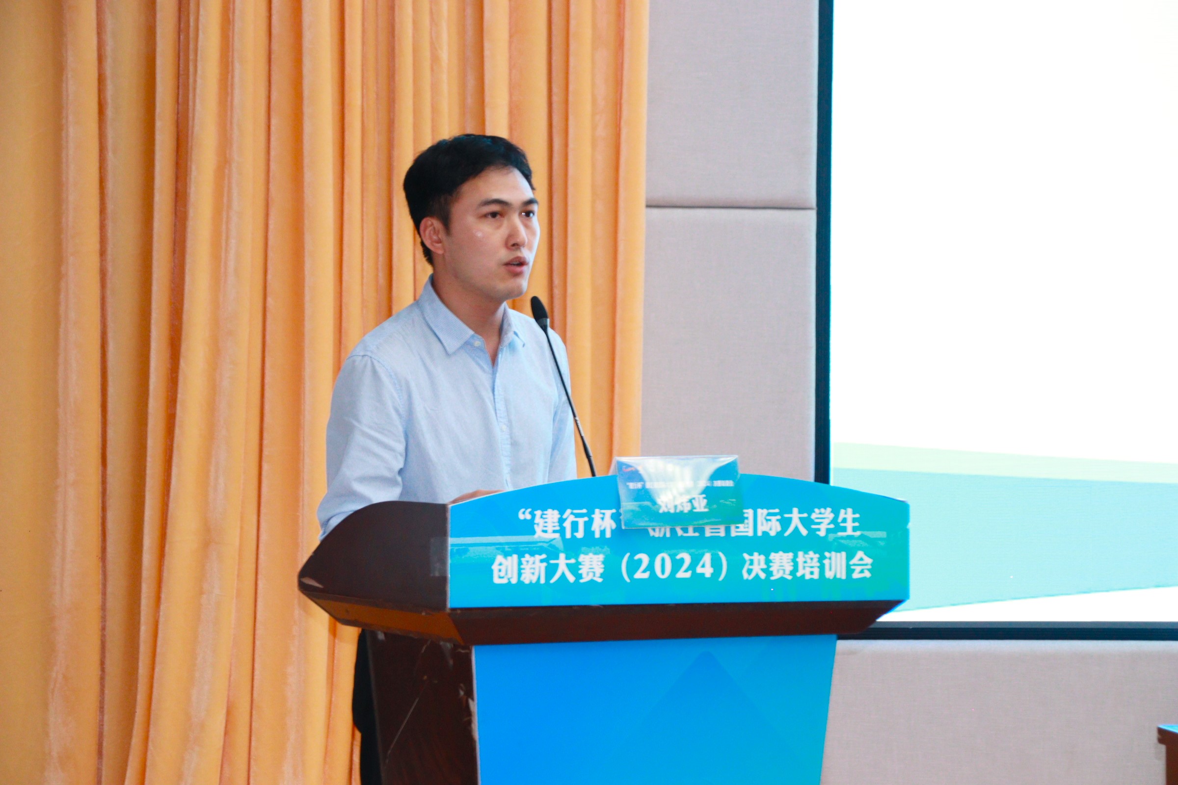 杭州大学生创业俱乐部主席、杭州市大学生创业联盟主席团主席郭羽作决赛项目路演培训。他表示,一个好的项目关键在于符合国家政策方针、满足社会需求、体现院校特色、符合同学专业特长,一份金奖项目材料应该具备主题鲜明、定位精准、逻辑清晰、形式专业、内容丰富、结尾有力六大特征。他通过呈现案例,详细阐述了如何精炼项目介绍、有效展示项目亮点、与评委高效互动等问题。