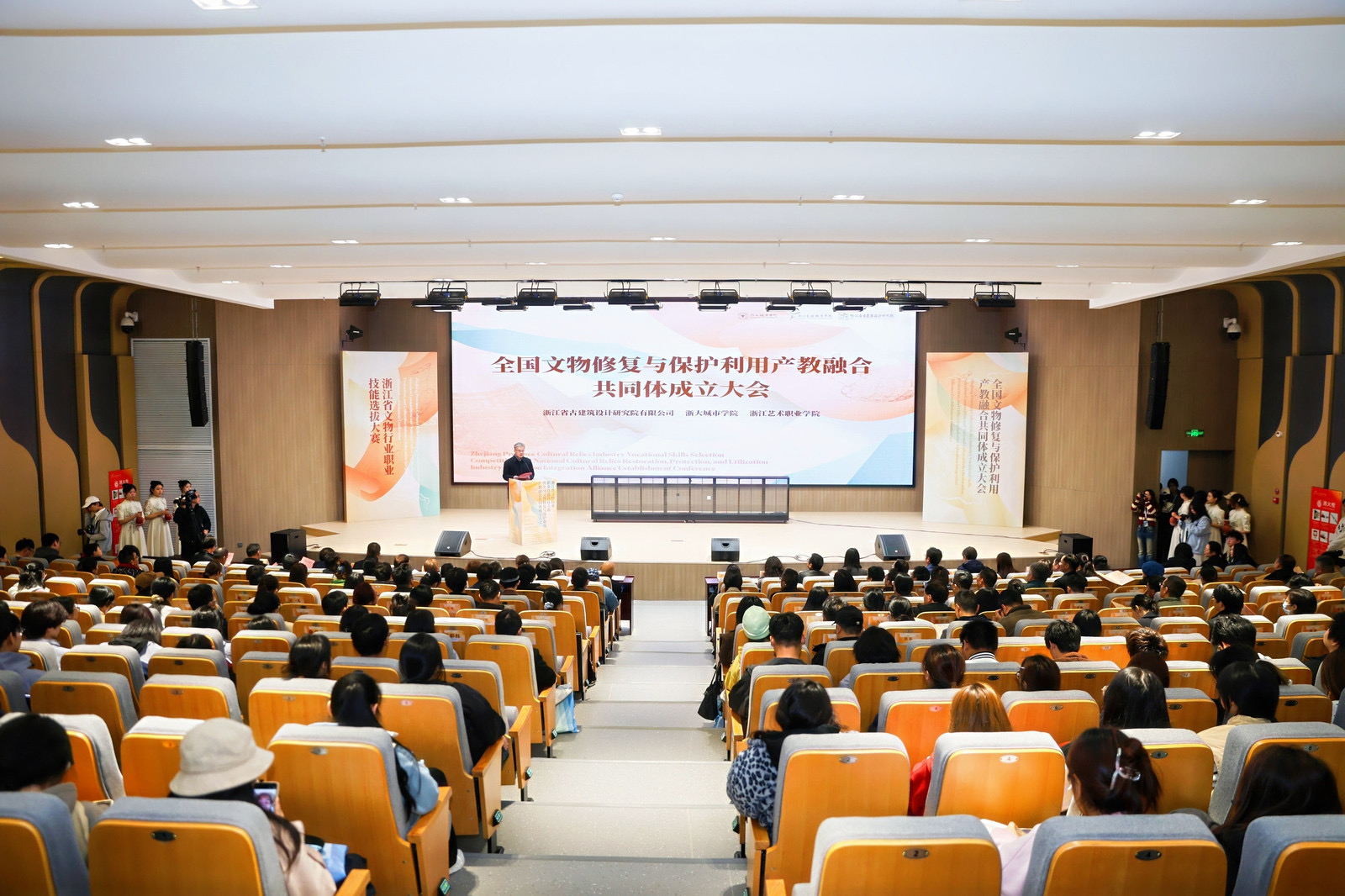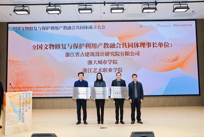 11月28日,由浙江省古建筑设计研究院有限公司、浙大城市学院和浙江艺术职业学院3家单位牵头,52家行业企业、院校、协会机构、学会组织参与建设的文物修复与保护利用产教融合共同体成立,成立大会在浙江艺术职业学院举行。