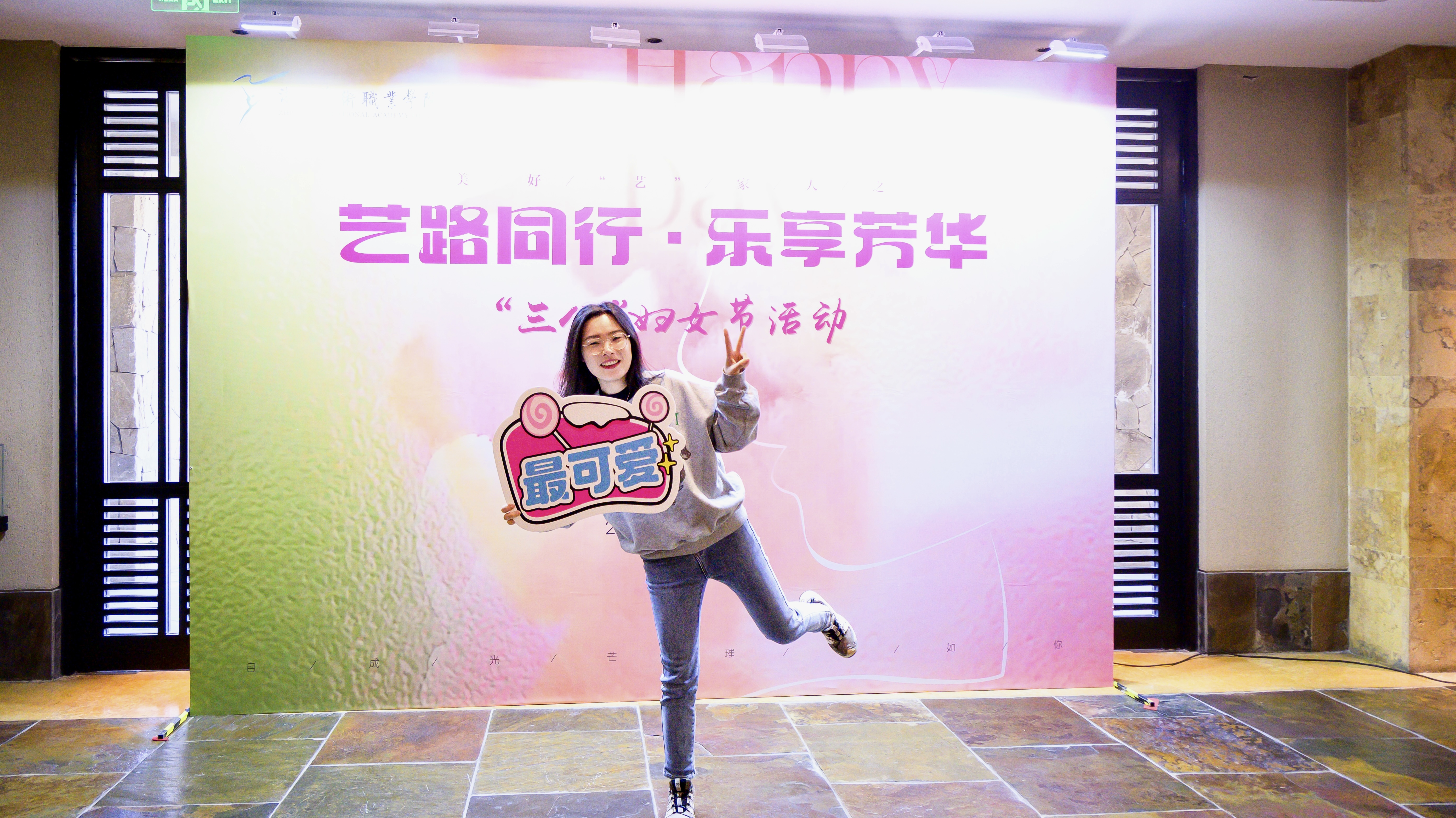 活动现场,从签到台的背景布置,到伴手礼的精心选配,从满面春光的合影留念,到踏春之行的圆满成功,每一个细节都彰显着对女教职工的衷心祝福。既有美好“艺”家人的团队理念,“艺路同行·乐享芳华”的衷心祝愿,“自成光芒·璀璨如你”的诚挚期盼,“女神节快乐”“集美貌与智慧并存”等标语,与充满少女心的蜜桃粉茶具伴手礼搭配,共同织就节日的温暖图景。