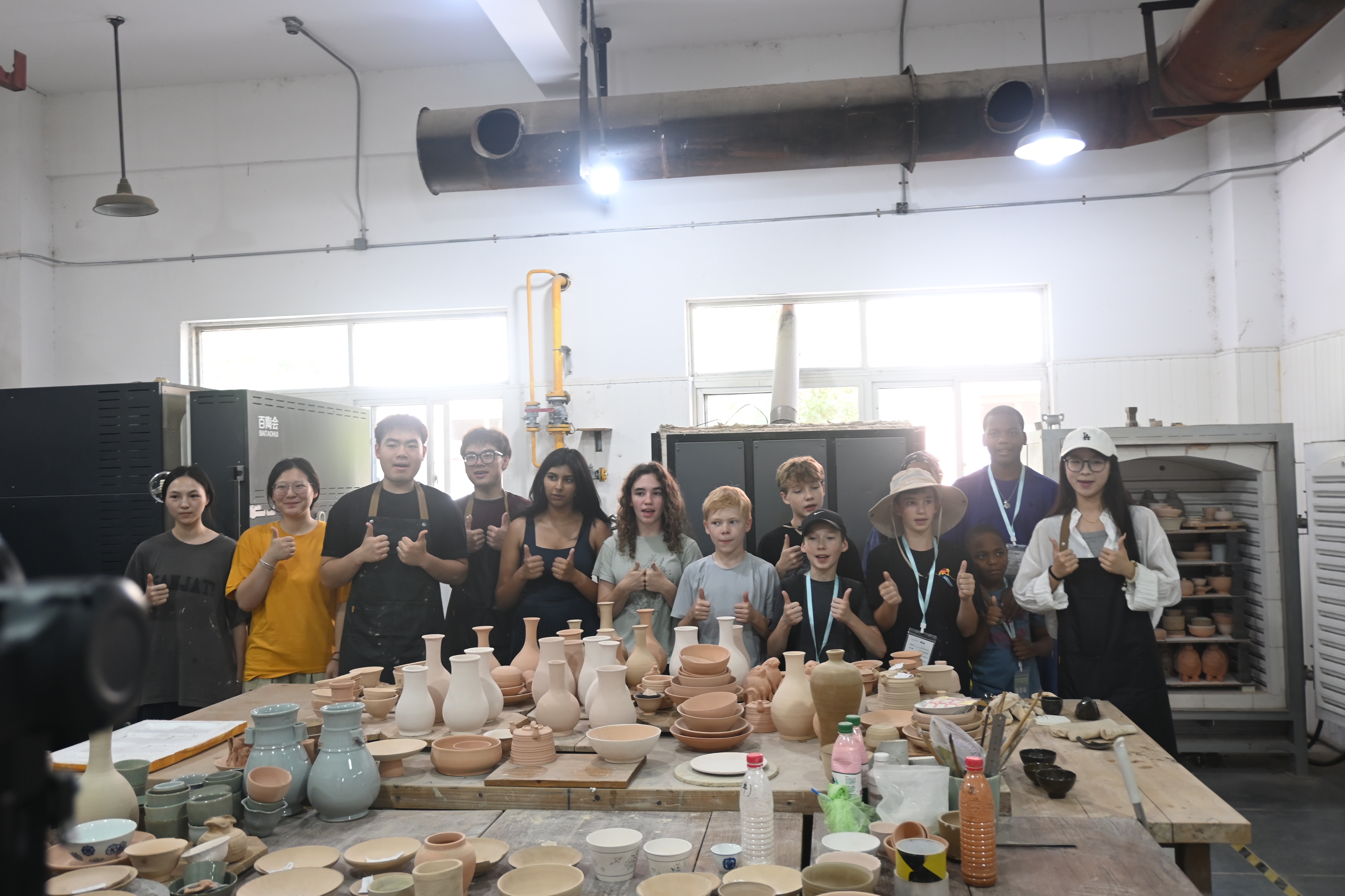 在陶艺实验室,龙泉窑的“粉青釉”烧制技法引发阵阵惊叹。
