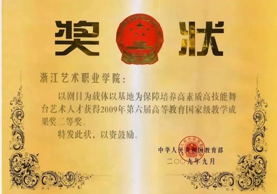 2009年,《以剧目为载体以基地为保障 培养高素质高技能舞台艺术人才》获国家级教学成果二等奖。