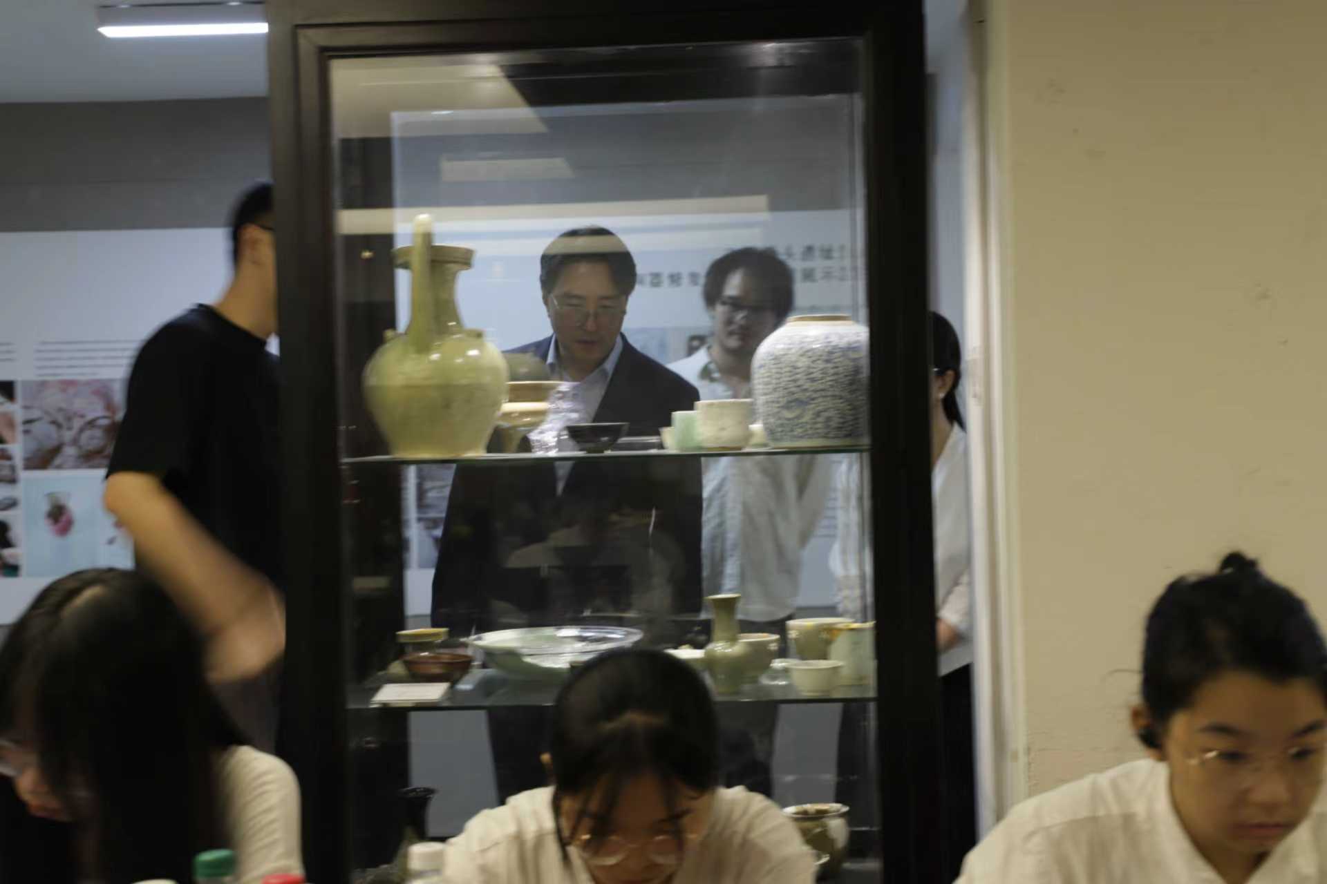 在戏曲学院,代表团观摩了越剧、京剧班的上课实况,近距离了解“校团合作”现代学徒制订单班戏曲人才培养机制,对学院将传统戏曲舞台实践与课堂教学深度融合的模式给予高度评价;在音乐学院,代表团旁听了美声演唱课堂教学,学生们的呼吸控制与情感表达令金院长频频点头;舞蹈学院的教室内,古典舞、民间舞实训课正在进行,学生们轻盈的身韵与富有张力的肢体语言,传递出中华传统舞蹈的美学特质,代表团成员纷纷用镜头记录下这一幕幕“活态”的艺术传承;在手工艺学院,代表团走进文物修复实训室与陶艺实训室,重点考察传统工艺的当代传承路径。文物修复室内,师生们正专注进行陶瓷的修复实践,从清洗、拼接到庭漆补全的每一道工序都展现出“守正创新”的匠心。