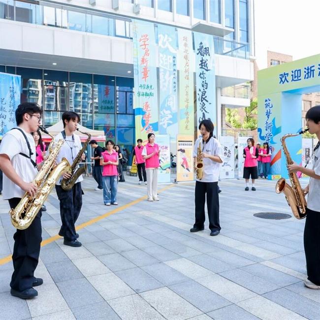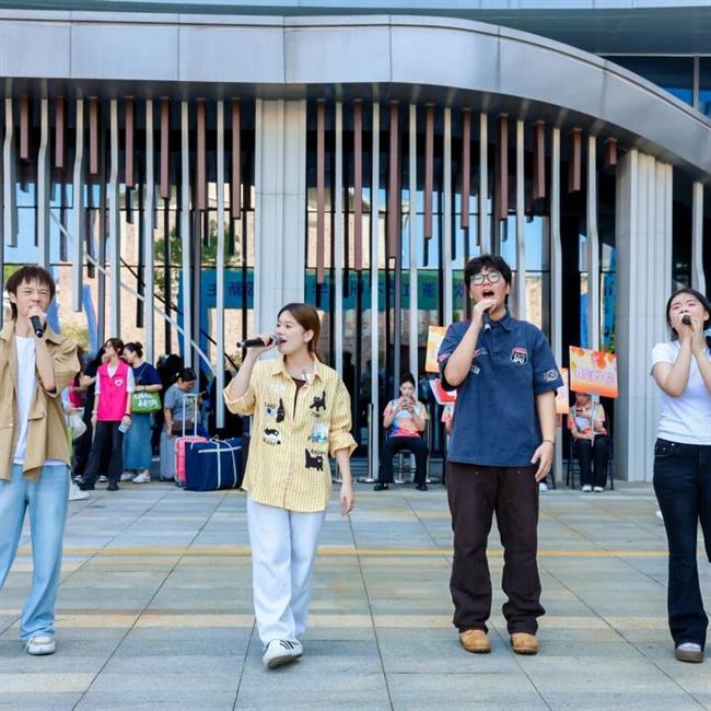 新教学综合楼中心广场上,校学生会搭建起临时舞台,带来一场场精彩纷呈的迎新演出。燃炸全场的街舞、优雅深情的萨克斯四重奏、引发共鸣的流行金曲串烧……表演者们全情投入,赢得现场阵阵掌声与欢呼。刚完成报到的新生李同学兴奋地说:“没想到一进校门就有这么精彩的演出,瞬间拉近了和学校的距离,太期待未来的大学生活了!”舞台边,“青春咨询台”也吸引了许多新生驻足。校学生会同学积极为新生介绍社团活动、校园赛事等,帮助新生提前规划大学生活。