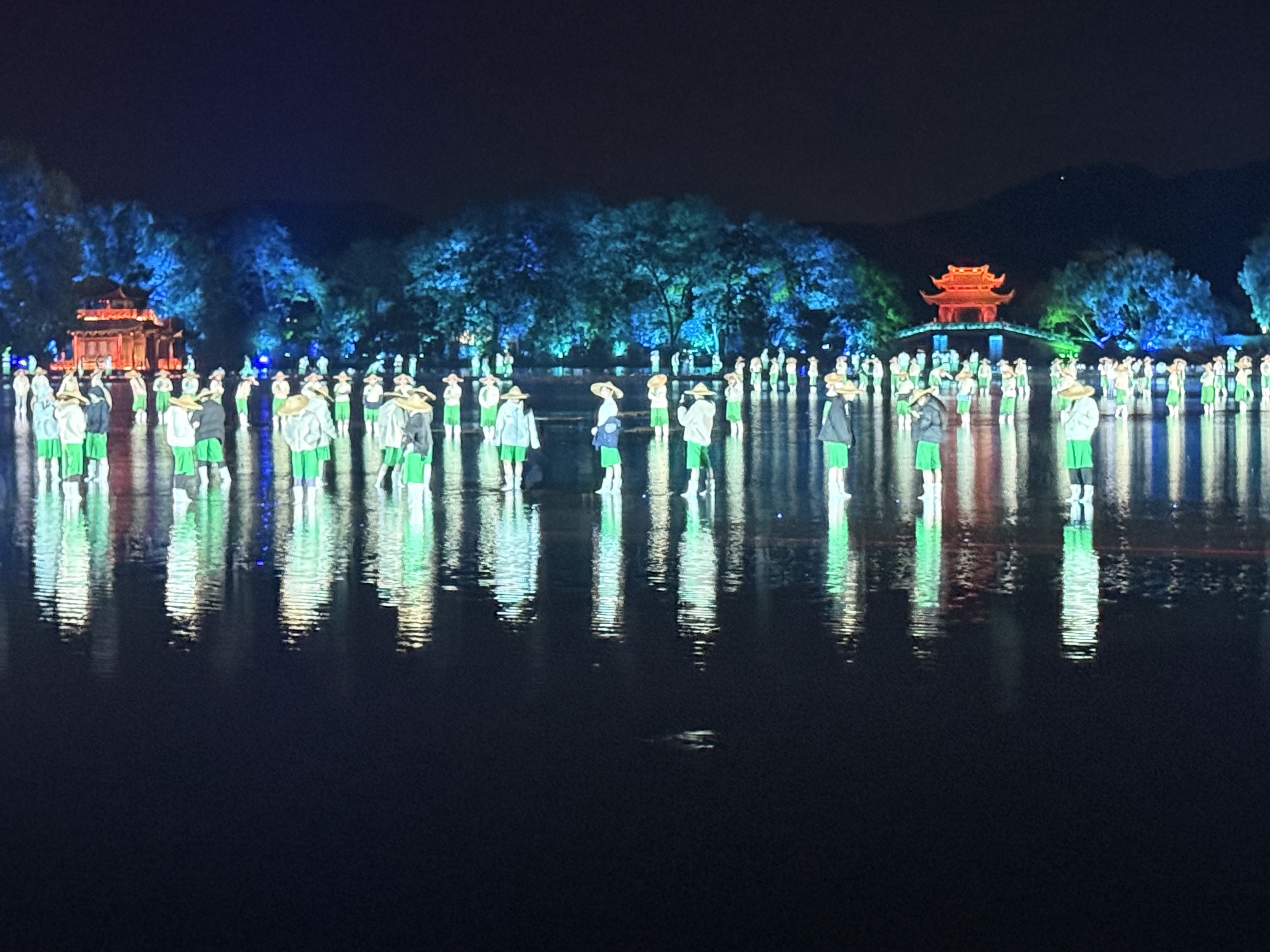 十月下旬,演员们正式进驻西湖现场进行合成排练。秋夜的湖风凉意袭人,露天舞台上的每一次排练,那穿透衣衫的寒意,都是对体力与意志的考验。
