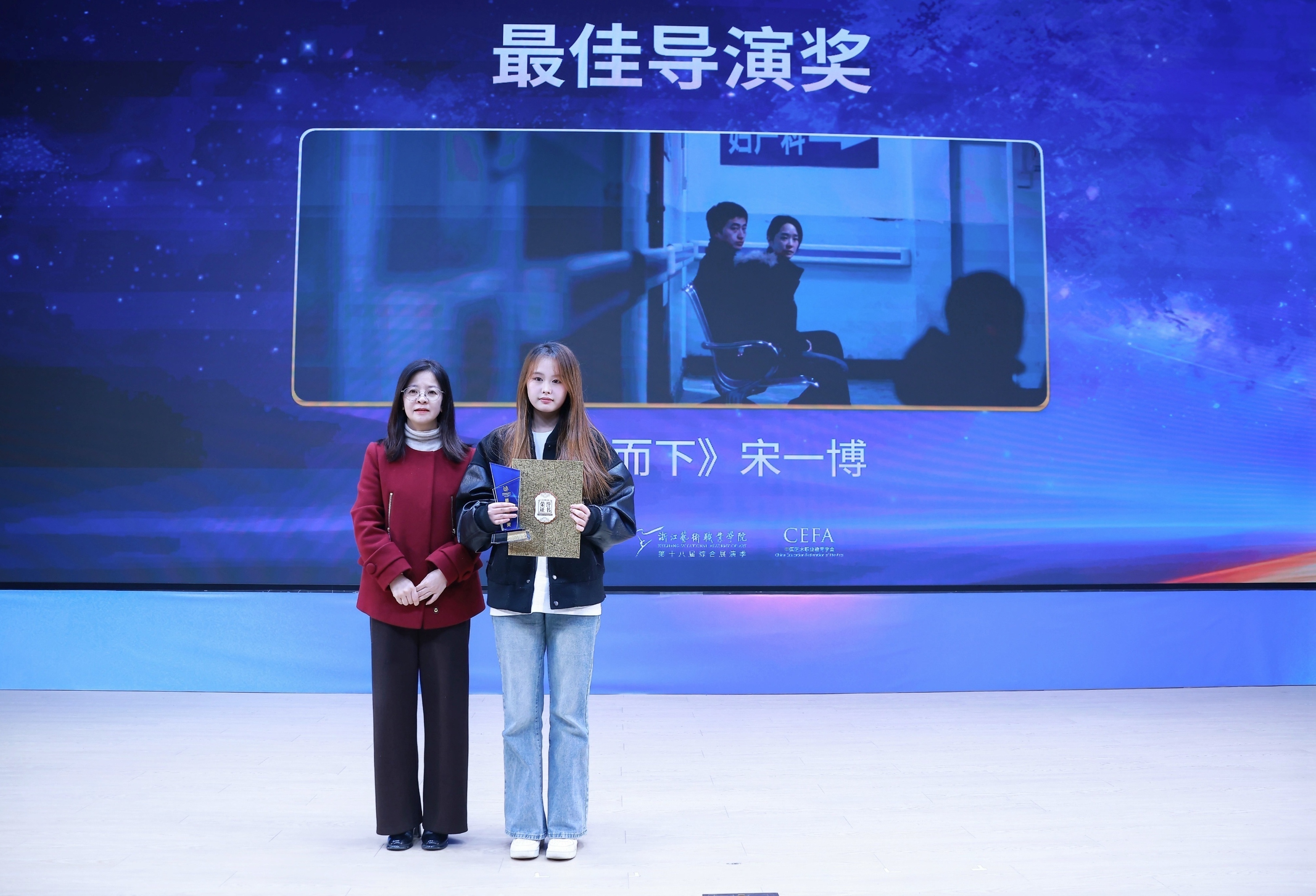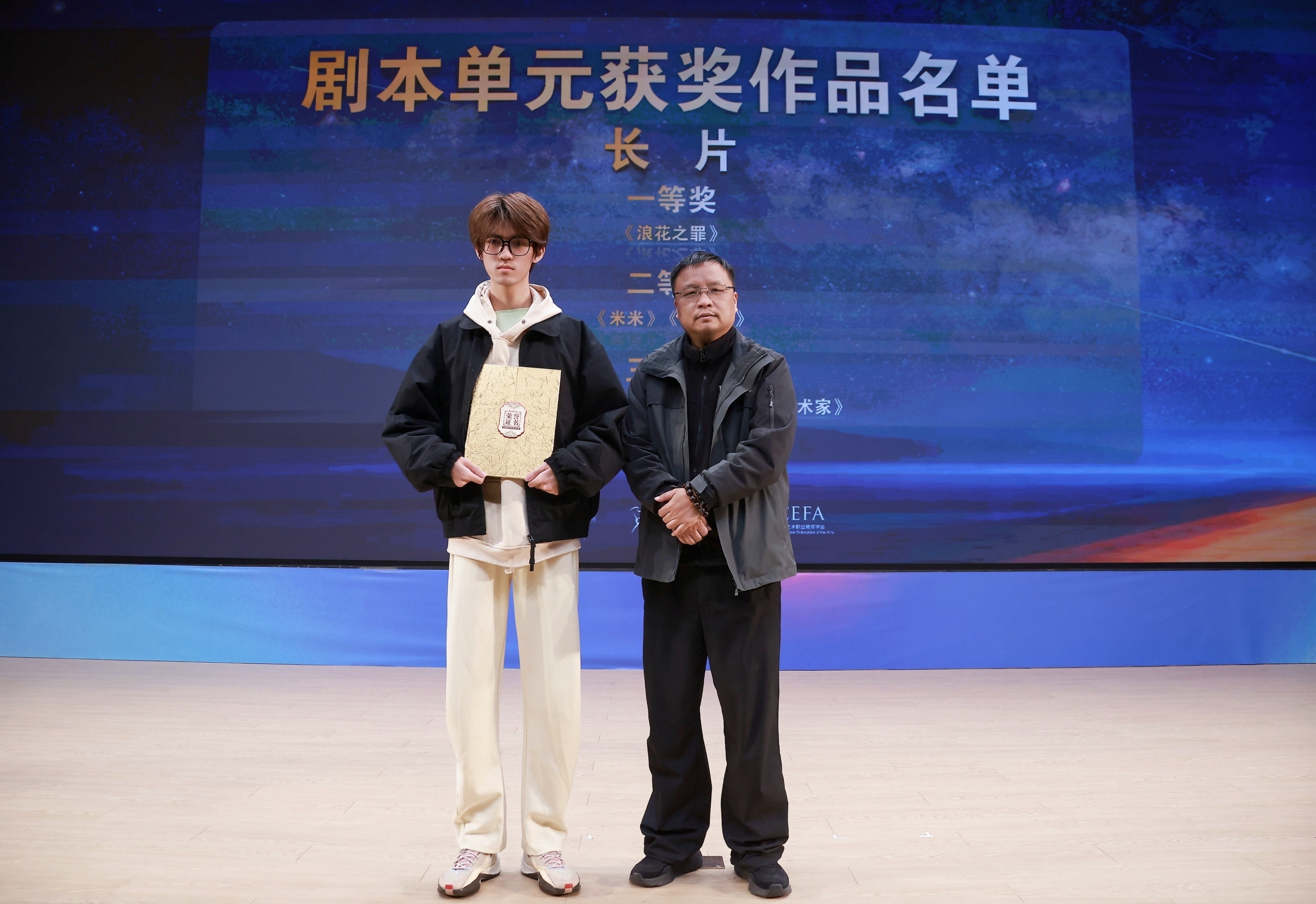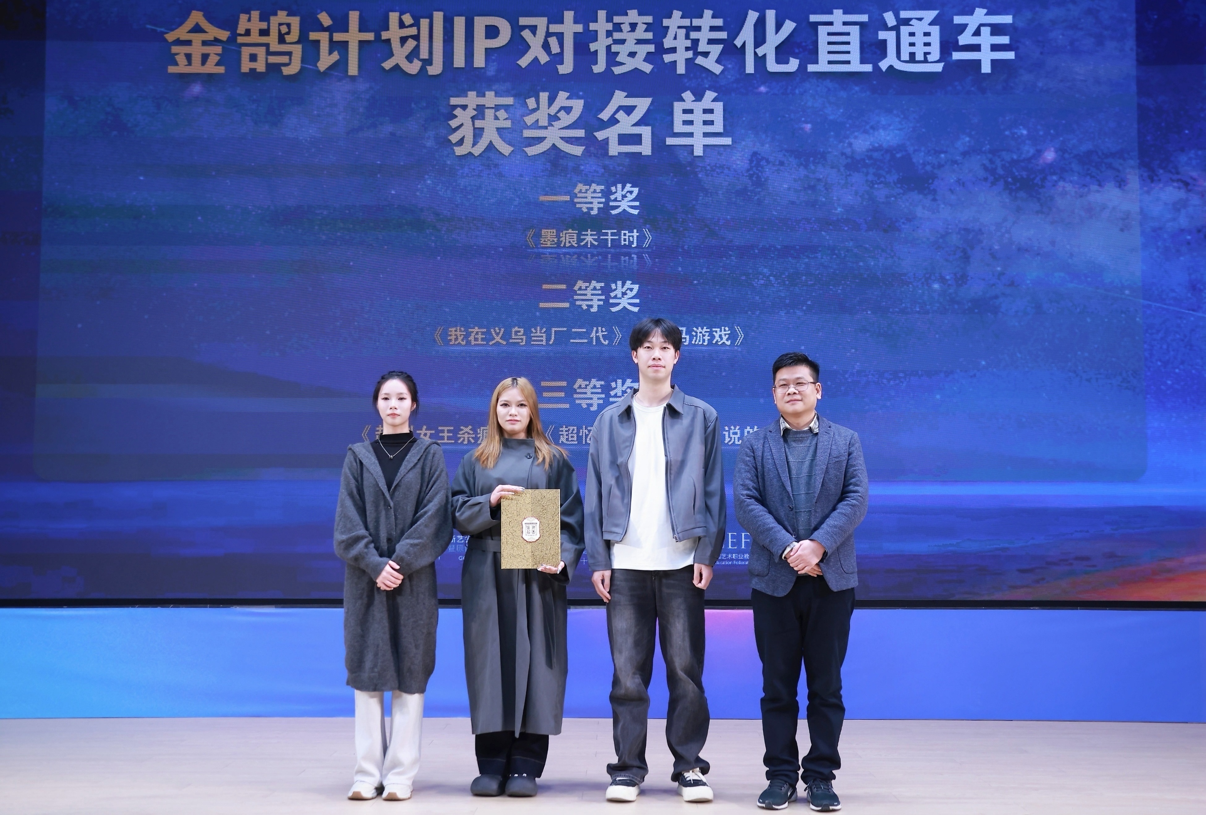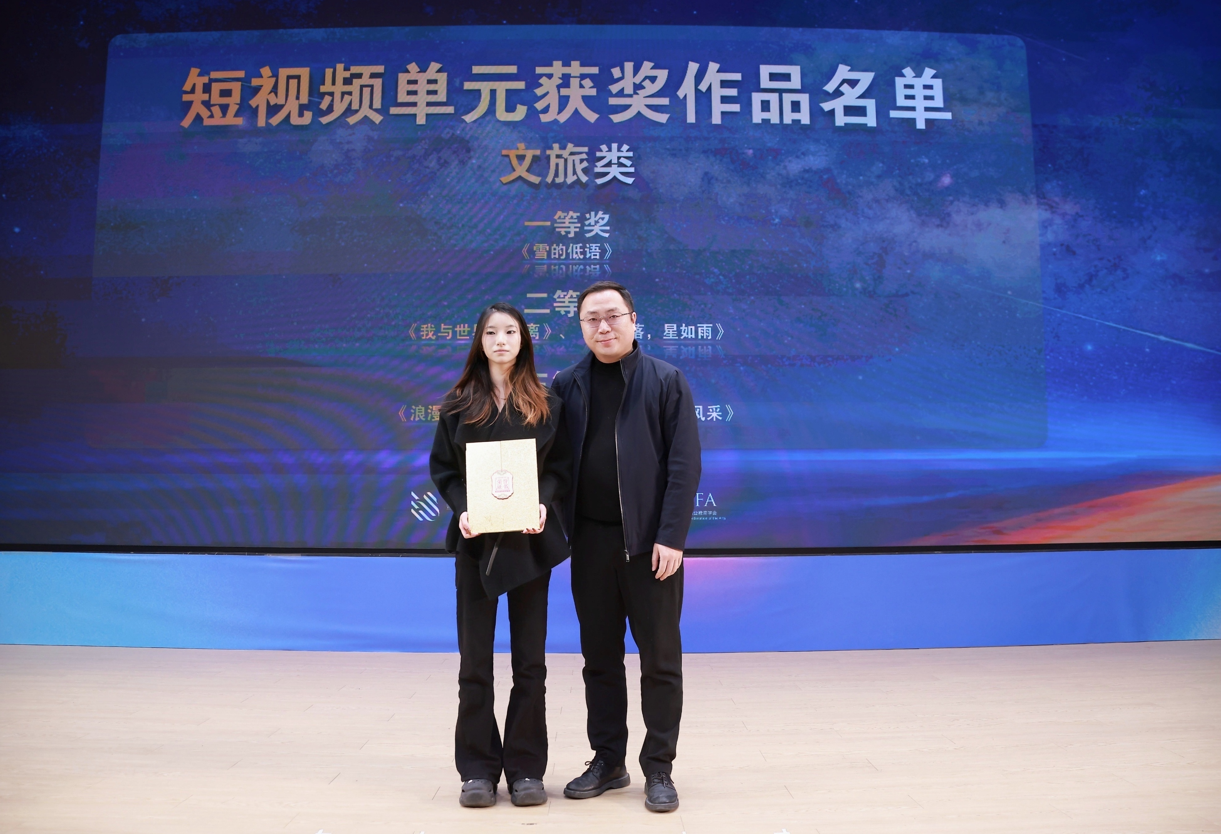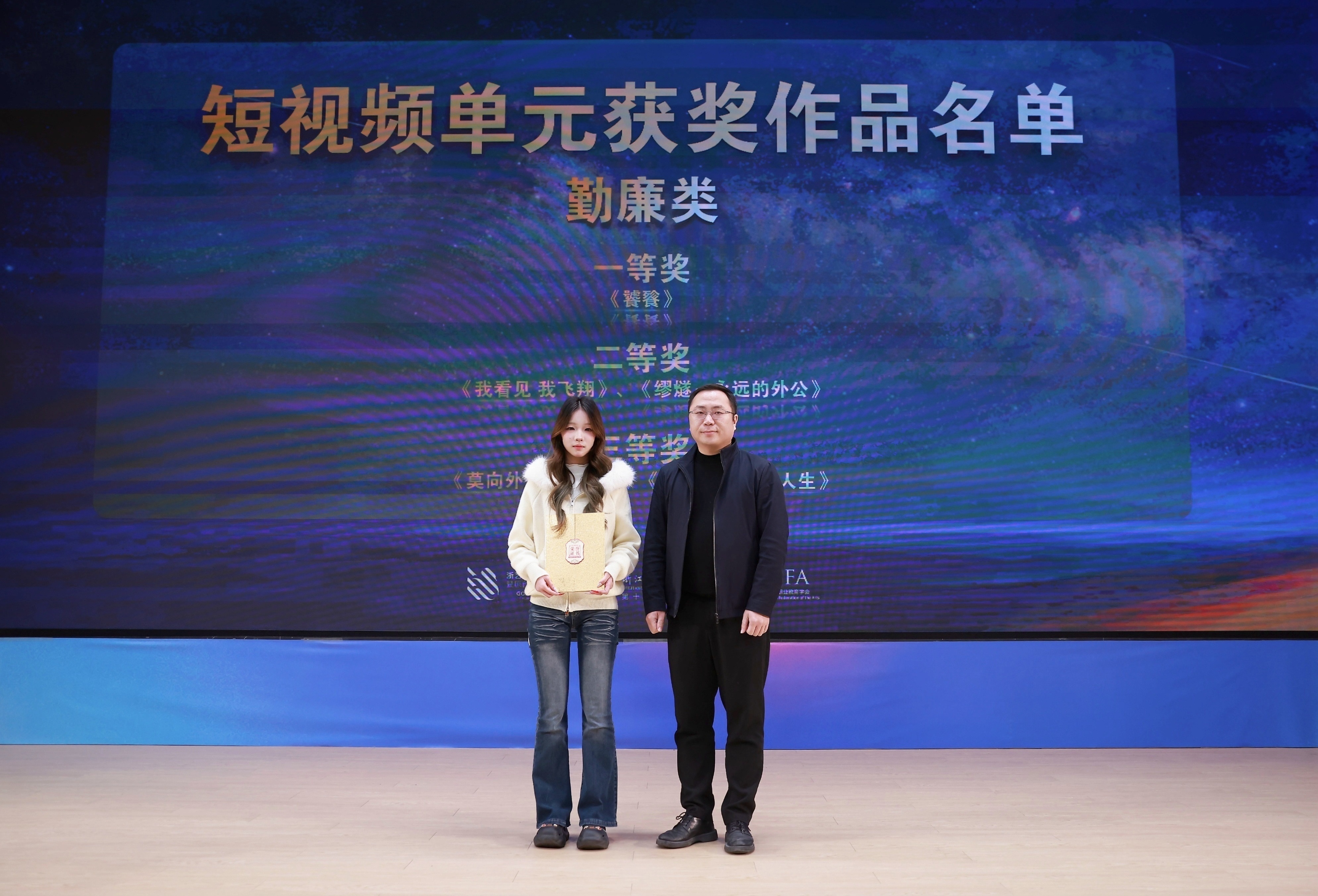 1121日晚,由浙江省教育厅、浙江省文化广电和旅游厅、浙江省电影局、浙江省电影家协会指导,中国艺术职业教育学会主办,浙江艺术职业学院、金鹄青年电影周暨原创影像大赛组委会、微短剧行业产教融合共同体联合承办的第八届金鹄青年电影周暨原创影像大赛,在浙江艺术职业学院落幕。