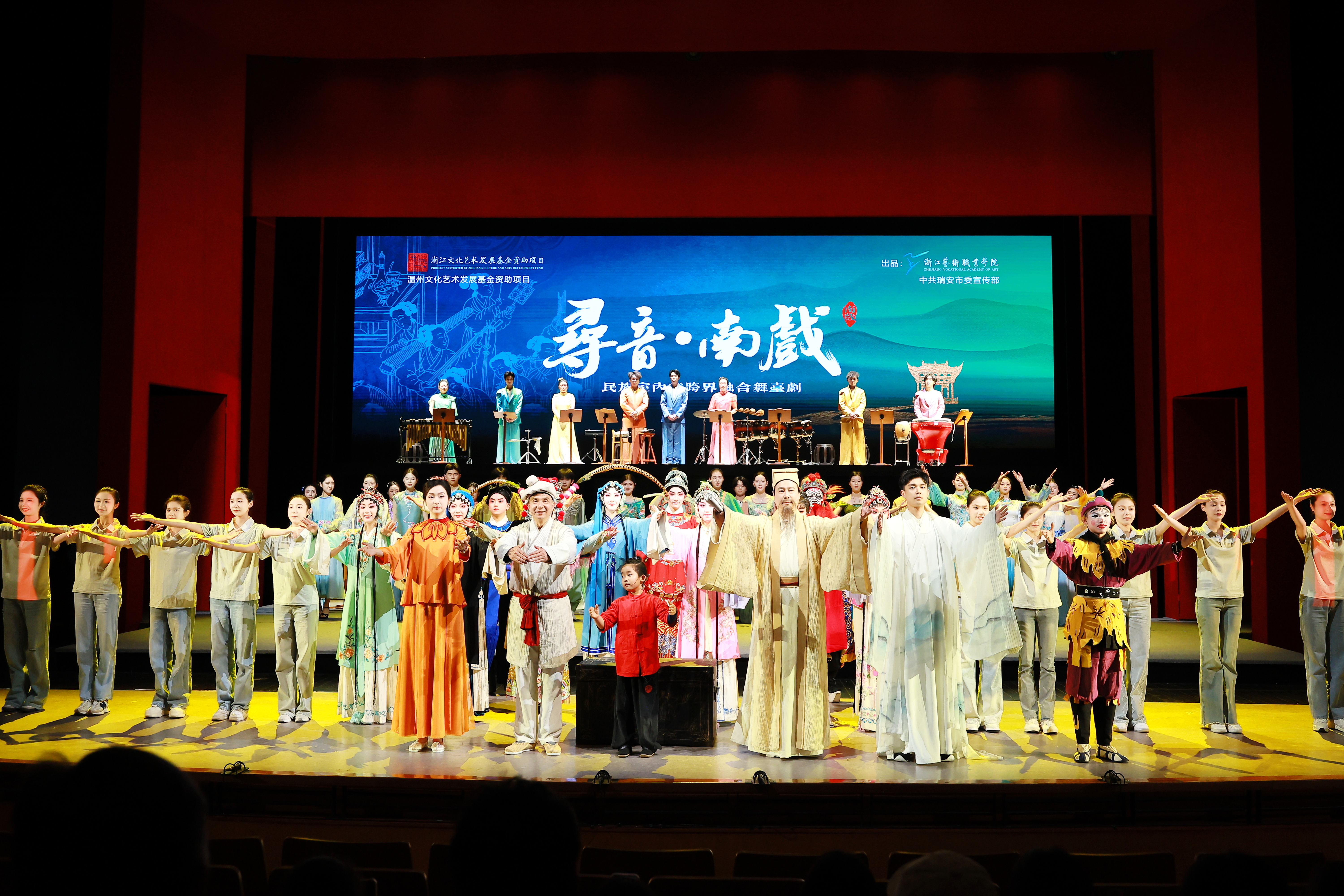 “一只旧戏箱,牵起千年戏脉;一曲老戏韵,唱响古韵新腔。”4月10日,由浙江文化艺术发展基金、温州文化艺术发展基金资助,浙江艺术职业学院携手中共瑞安市宣传部联合出品的民族室内乐跨界融合舞台剧《寻音·南戏》,在浙江实验艺术剧场首演。
