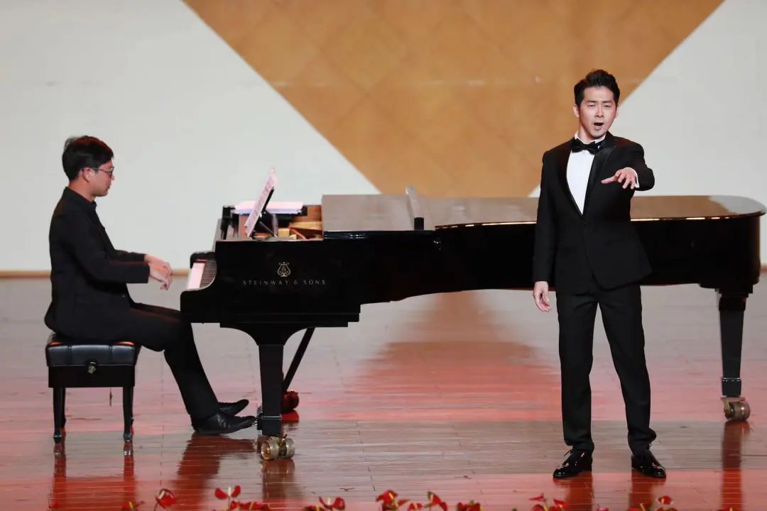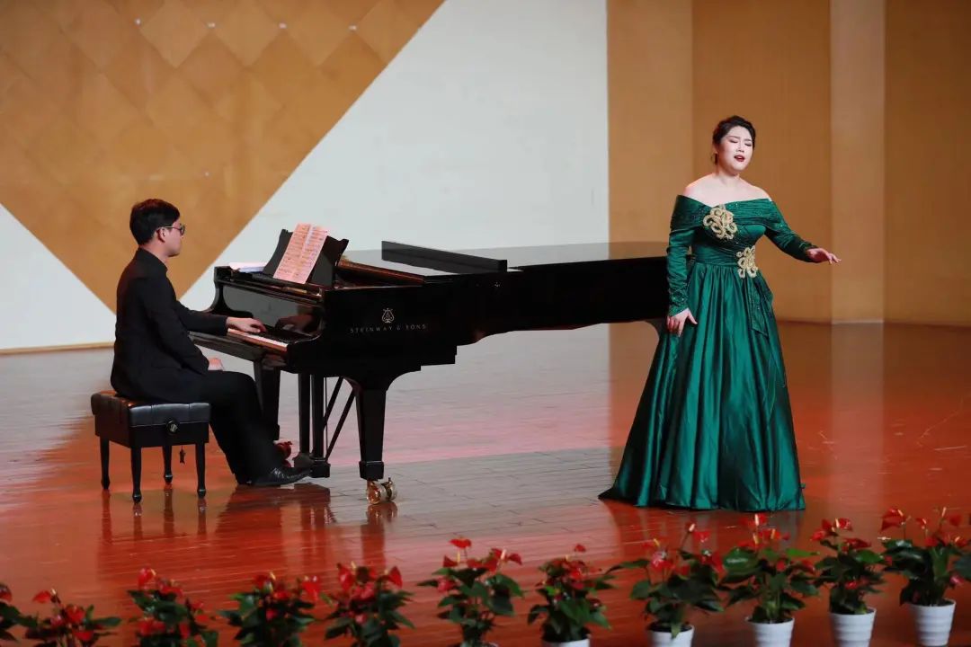 音乐会在热烈的掌声中拉开帷幕,本场音乐会共有十五首曲目,曲目种类丰富、风格多样。两位同学以其饱满的情感、精湛的演唱技巧辅以钢琴再现了声乐艺术的有声维度,以及经典作品中深厚的中华文化底蕴,唱出了喜庆二十大,实现第二个百年奋斗目标的信心和决心。本场音乐会特邀青年钢琴家,音乐学院青年教师熊壮壮担任艺术指导,特邀青年男中音,音乐学院21届优秀毕业生周余亿强担任助演嘉宾。两位学生的专业教师朱卓凡登台演唱一曲《奇妙的和谐》,为音乐会倾情助力。