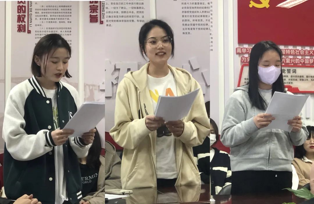 培养对象代表、20键盘班夏晨洋,高年级入党积极分子代表、19管流一贯班张郁鑫,新学员代表、19民乐一贯班余葭奕发言。她们表示将牢记初心使命,坚定理想信念,在习近平新时代中国特色社会主义思想指引下,奔赴新征程,下一番心无旁骛、笃定前行的苦功夫,在培养中成长、在成长中升华,把服务奉献作为人生底色,把砥砺奋斗作为个人追求,在拼搏中成就出彩人生,给党旗添光彩,书写人生华章!
