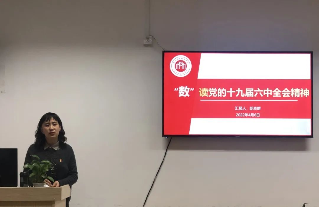 胡卓群以《“数”说十九届六中全会》为题上专题党课。她从一个根本问题、两个确立、三次理论飞跃、四个历史时期、五大历史意义、十个明确、十个方面宝贵经验、十三个重要成就出发,详细解读了《中共中央关于党的百年奋斗重大成就和历史经验的决议》。她表示,希望全体学员深刻理解中国共产党为什么“能”、马克思主义为什么“行”、中国特色社会主义为什么“好”,在学思践悟中明是非、知荣辱、立志向、修言行,心怀“国之大者”,努力成为担当民族复兴重任的时代新人。