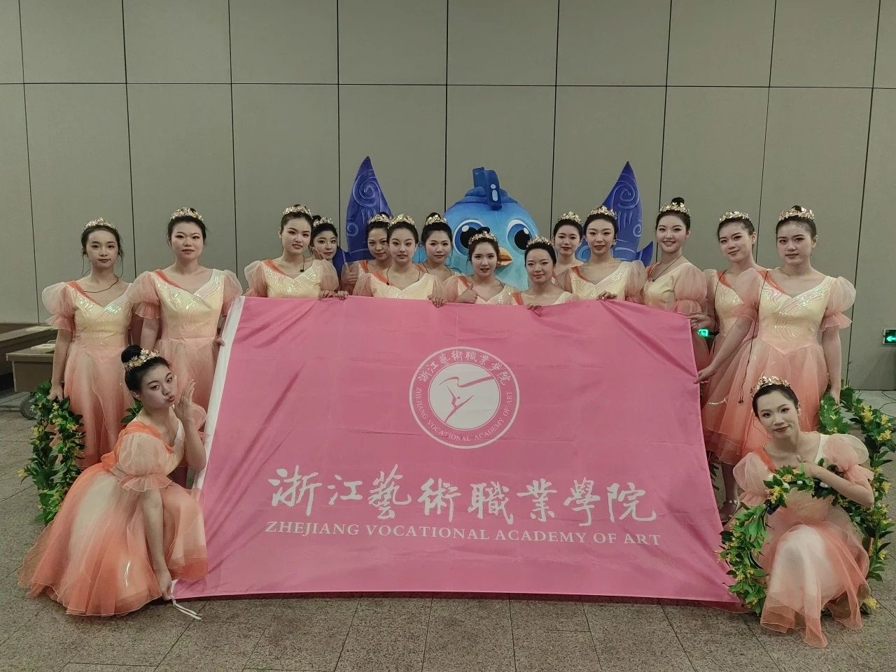 本次开幕式由金桂为主要元素,通过科技手段打造了一个爱的舞台。而我院32位同学们有幸参与这次连接亚洲的盛大演出,在包括第一篇章《心相约》、第三篇章《梦闪耀》和主题曲《我的深情为你守候》等节目中扮演金桂少女。”