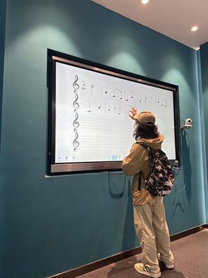 共建华章齐唱响,红色基因永传承。横坎头村人民这股戮力同心的合作意识与苦干实干的建设干劲深深感染了在场师生们,大家在馆内自发组织起来,发挥自身的音乐专业优势,在电子大屏前用电子笔写谱练歌,跟着乐谱共同唱响《团结就是力量》,响亮而高亢的歌声在馆内久久回荡,也将一直回荡在每个人的心中。