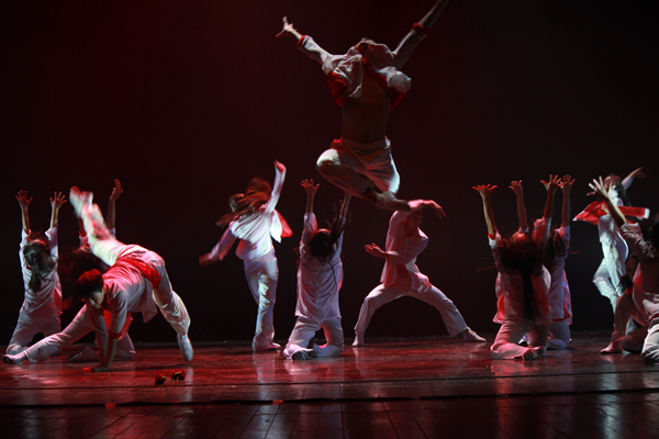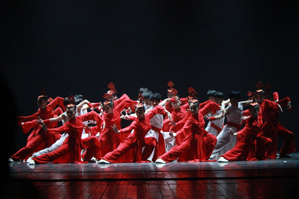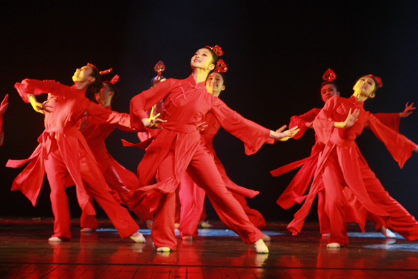 演出在大气恢弘的群舞《龙飞凤舞》中拉开了序幕。09中国舞中专班的学生融合龙一般的筋骨,凤一般的柔美,一番酣畅淋漓。舞台上散发着夺目的光芒,同学们从容而舞,行舒意广,不经意的动作也绝不失法度,手眼、身法都应着密集的鼓点,纤细的罗衣从风而舞,络绎不绝地飞舞开来;灯光渐灭,再亮起时,迅驰的马蹄已把我们带入了遥远的草原,带入了一望无际万马飞鬃的壮丽景象,12舞蹈表演大专班的《飞鬃马》亮相舞台,全场掌声雷动;10舞蹈表演一贯女班的《八女投江》刻画了一副悲壮的情景,八女投江,气壮山河,舞蹈中充满了阳刚之美,又抒发了女性的端庄之美,这些舍生忘死的抗日女兵们活生生地浮现在了观众眼前,大家都被这样的精神所感染,又为舞者们扎实的功底而赞叹;13舞蹈表演直升班芭蕾舞演员精彩的单腿旋转,带来了力的旋律,力的线条。天鹅蹁跹起舞,柔软的白色裙子一颤一颤,像是一朵柔软的云在空中划的优美弧线。