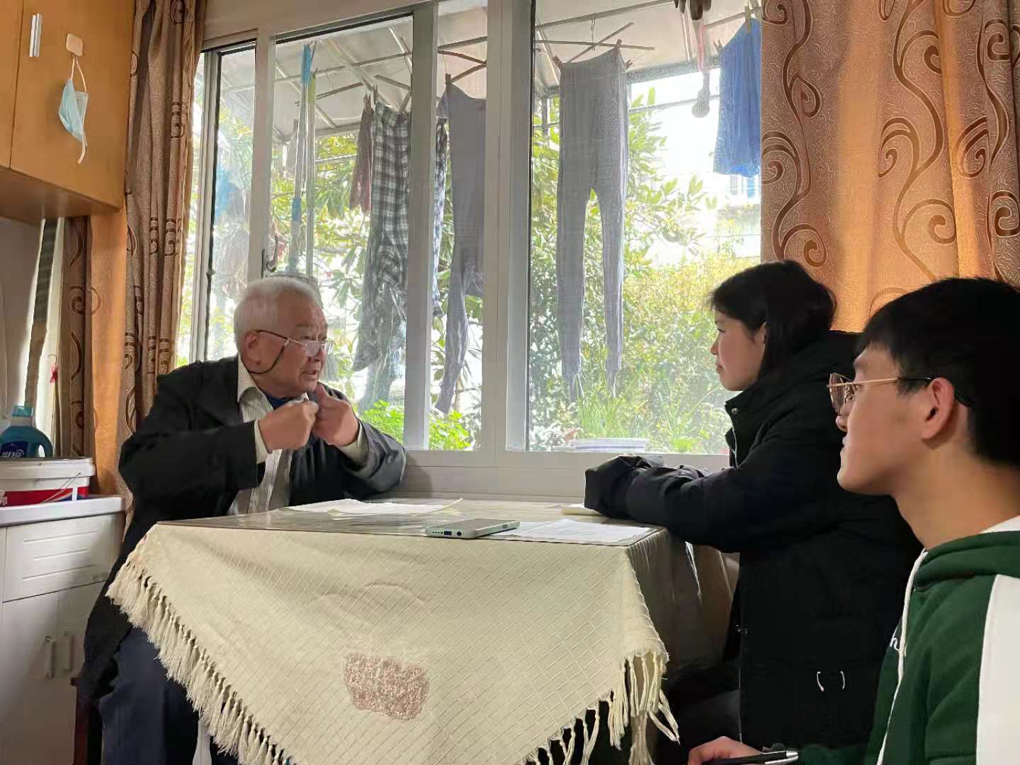 在陈爷爷不大却温馨精致的家里,我听他讲述了他的戎马生涯。81岁的陈爷爷不管讲到什么时候的经历都非常开心。拍着大腿,眼睛眯起,时不时说道“不管以前怎么样,现在的我幸福指数很高。”爷爷家里是四代同堂。
