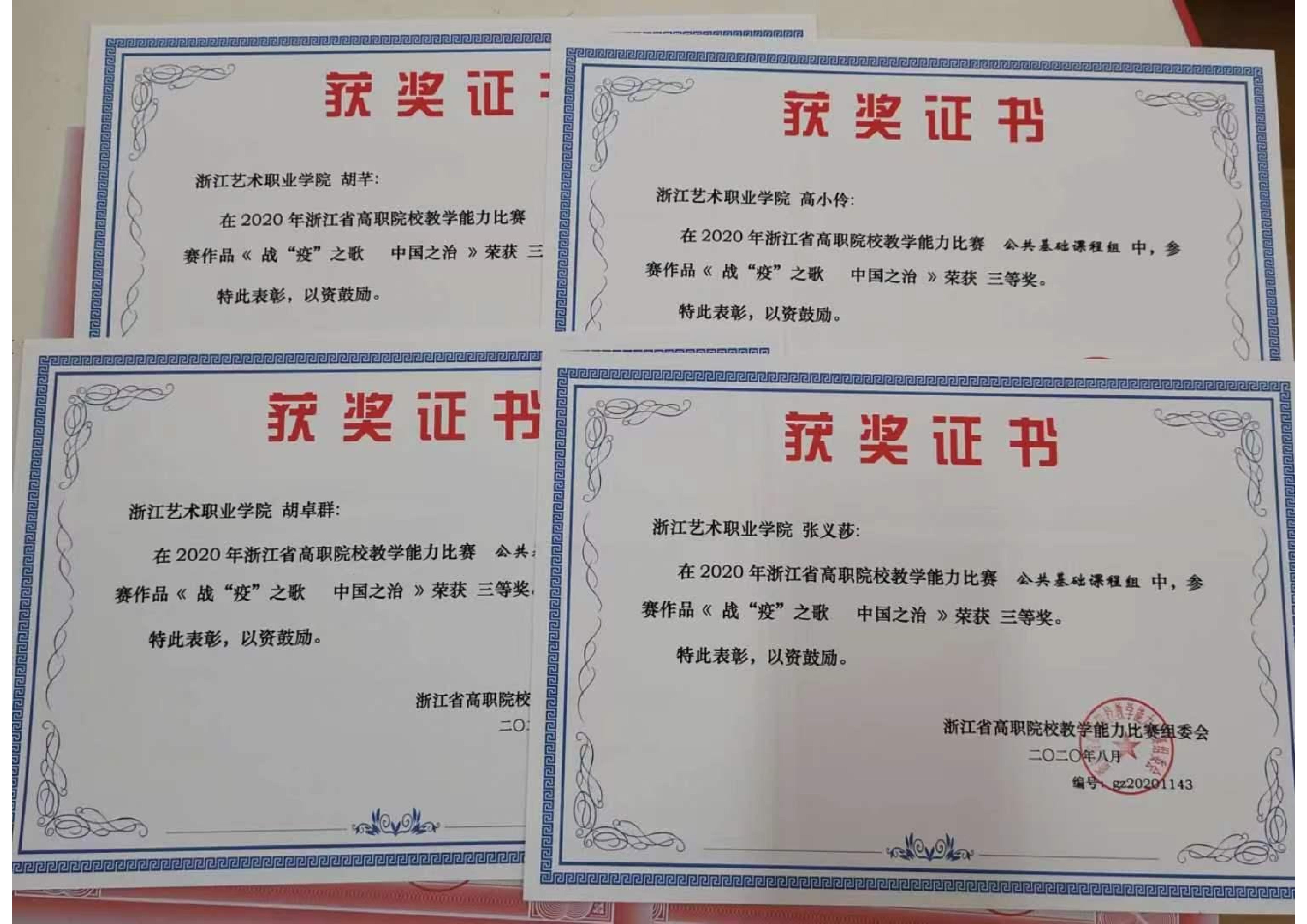 ▲《战“疫”之歌 中国之治》荣获2020年浙江省高职院校教学能力大赛三等奖
